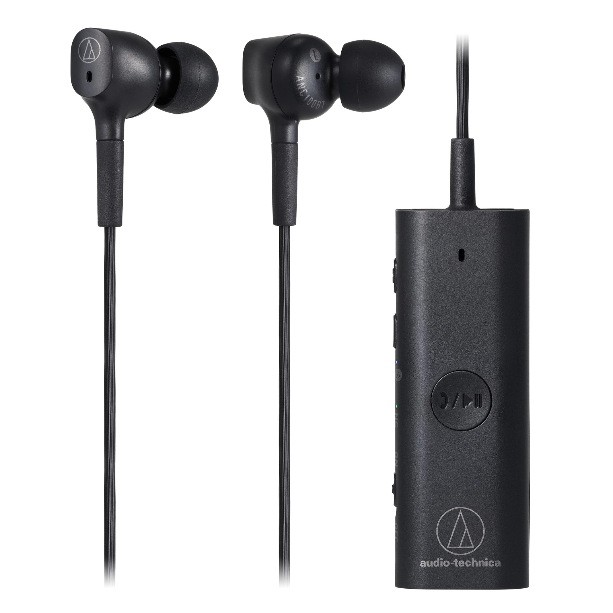 Dieser leichte In-Ear-Bluetooth-Kopfhörer ermöglicht mit seiner Noise-Cancelling-Technologie auch unterwegs ungestörten Musikgenuss ohne unerwünschte Umgebungsgeräusche. Der ATH-ANC100BT ist mit 12-mm-Treibern ausgestattet, die eine dynamische und präzise Audiowiedergabe gewährleisten sollen. Zehn Stunden Akkukapazität bieten reichlich Zeit für entspannte Flugreisen, konzentriertes Arbeiten im Büro oder unbeschwerten Musikgenuss zu Hause. Sollte der Akku wirklich einmal leer werden, ist das mitgelieferte Kabel (USB auf 3,5-mm-Klinke) schnell griffbereit, so dass es sofort weitergehen kann.