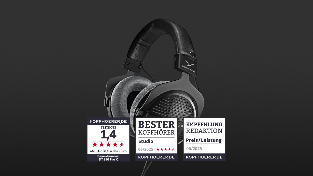 Seit den 1980er-Jahren ist der DT 990 PRO (Test) in professionellen Studios weltweit etabliert. Der neue Der beyerdynamic DT 990 PRO X ist ab sofort zum Preis von 199,00 EUR (UVP inkl. MwSt.) erhältlich. führt diese Tradition fort – mit natürlicher Höhenanhebung, großer Transparenz und einem offenen Klangbild, das akustische Schwächen zuverlässig offenlegt. Ideal für den Einsatz in der Postproduktion, beim Mixing und Mastering.