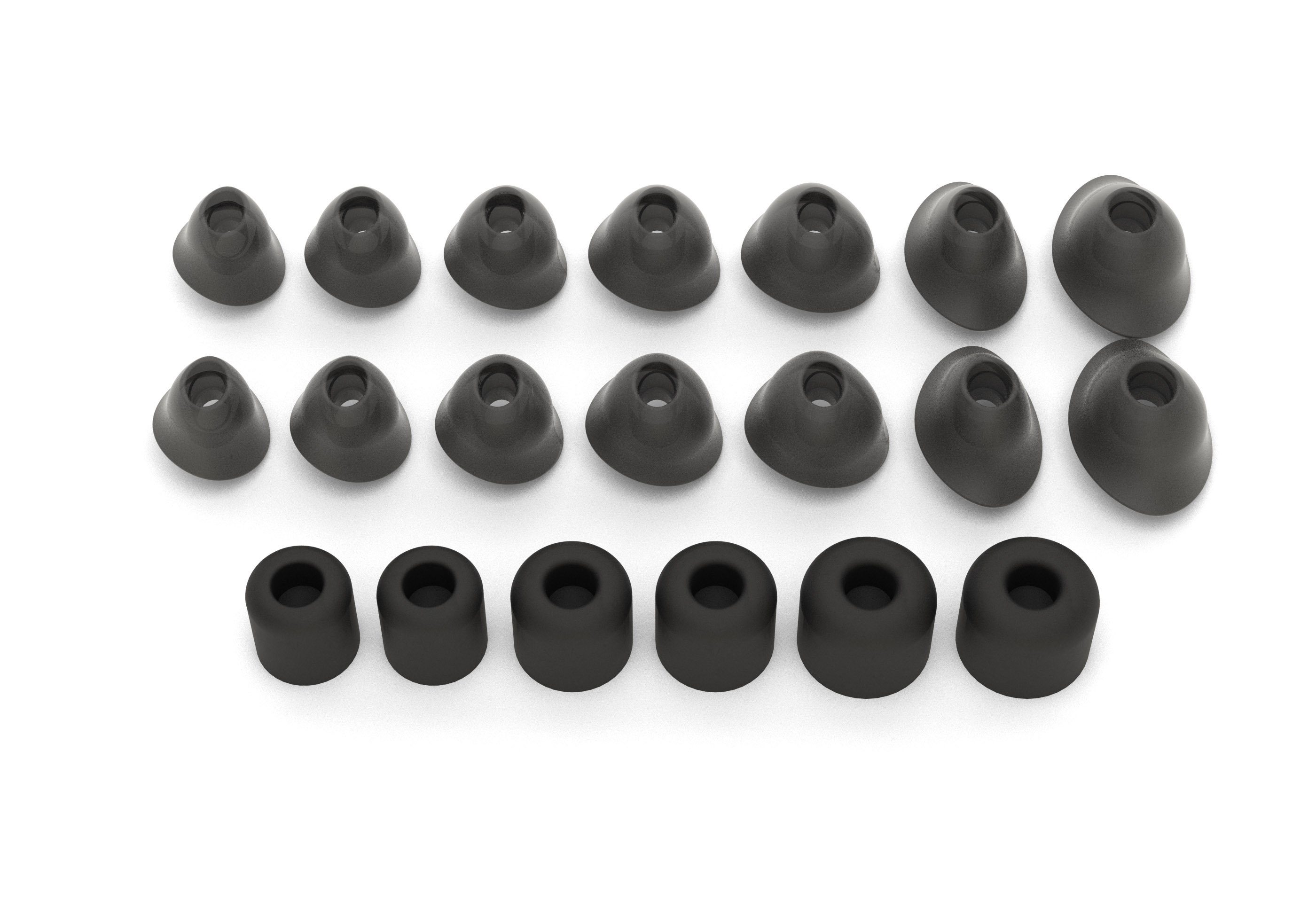 Wie Beyerdynamic mitteilt, haben sie noch nie so viel Aufwand betrieben, um die Passform eines Kopfhörers zu perfektionieren. Damit sich der Xelentro remote optimal ins Ohr seines Trägers schmiege, seien zahllose Silikon-Abdrücke gemacht, Köpfe vermessen und Computerdaten ausgewertet worden. Das Ergebnis seien anatomisch geformte Ear-Tips in nicht weniger als sieben Größen – von XS bis 3XL. So viel Maßkonfektion biete kein anderer Hersteller. Mit ihrem ovalen Zuschnitt sollen sie wie angegossen im Gehörgang sitzen – ohne die üblichen Druckgefühle beim Tragen von In-Ears. Für Fans der klassischen Aufsätze sollen zusätzlich Formschaum-Ear-Tips von Comply in drei Größen beiliegen.