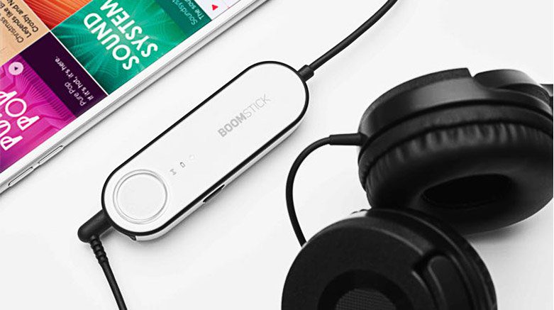 Standard-Kopfhörer von Apple, Samsung und Co klingen nicht gut genug. Das findet das noch junge Unternehmen BoomCloud 360. Und um das zu ändern präsentieren sie mit dem Boomstick ein kleines Add-on, das wie ein Smartphone-Zusatzakku aussieht und zwischen Device und Kopfhörer gesteckt wird. Der batteriebetriebene Riegel (bis zu 14 Stunden Laufzeit) soll ein High-End-Audio-Erlebnis liefern und das Unternehmen wünscht sich nicht nur den Einsatz an Smartphones sondern auch an Computern oder anderen Abspielmedien.