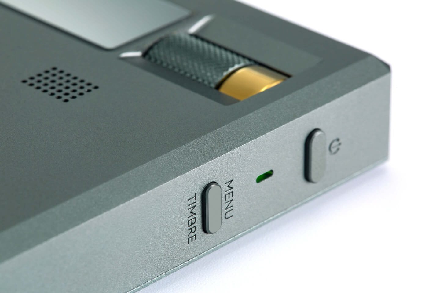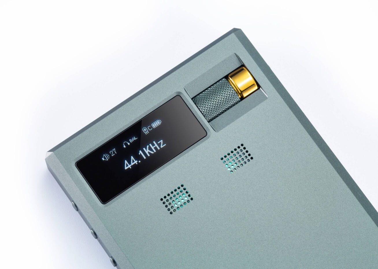 Ein hochauflösendes Display zeigt alle relevanten Informationen an – darunter Lautstärke, Anschlussart, Samplingrate und Akkustand. Die Bedienung erfolgt über seitliche Funktionstasten und eine präzise einrastende Lautstärkewalze an der Vorderseite. Auch die Klangsignatur der Nutube-Röhre lässt sich hier direkt steuern.