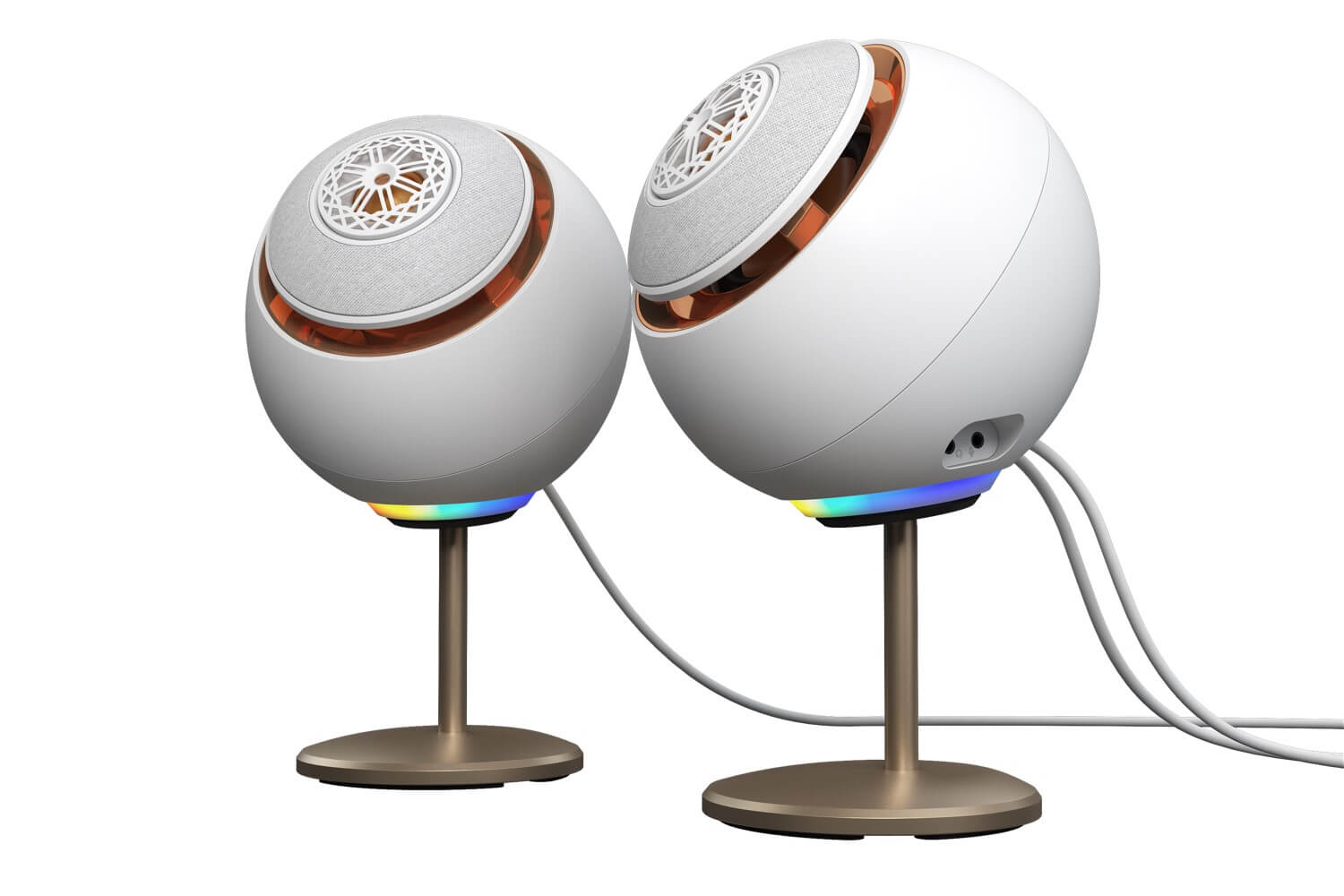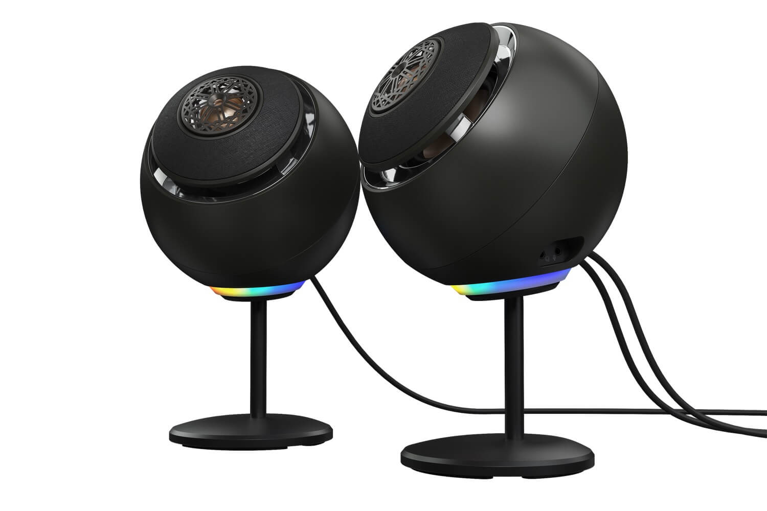 Die Lautsprecher können mit einem mitgelieferten Ständer leicht angehoben werden, um die Klangprojektion zu optimieren und den Schreibtisch optisch aufzuwerten. Die RGB-Beleuchtung deckt das gesamte Farbspektrum ab und fügt jedem Raum eine lebendige, persönliche Note hinzu.