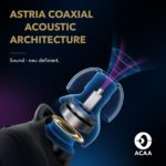 Der Kopfhörer kommt mit einer speziellen Bauform der Treiber daher: Astria Coaxial Acoustic Architecture – kurz ACAA genannt – beschreibt dabei die Anordnung der verbauten Treiber, die nicht nebeneinander, sondern voreinander gesetzt und zueinander verdreht sind, so dass keine Frequenzauslöschung und weniger Laufzeitversatz stattfindet, was für satte Bässe und schöne Mitten sowie Höhen sorgen soll, die dann auch noch so gut klingen sollen, wie aus dem Tonstudio.