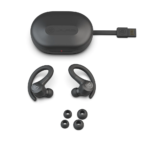Die In-Ear-Kopfhörer sind mit 6 mm großen Treibern ausgestattet und weisen einen Frequenzbereich von 20 Hz bis 20 kHz auf. Damit sich das Fitnessstudio endgültig in eine Konzerthalle verwandelt, stehen drei verschiedene Equalizer-Einstellungen zur Verfügung: JLab Signature, Balanced oder Bass Boost. Zur Steuerung während des Trainings hat JLab Touch-Sensoren verbaut. Ein MEMS-Mikrofon im rechten Ohrhörer ist ebenfalls vorhanden, falls die Pause zwischen zwei Übungen für ein kurzes Telefonat oder die Aufnahme einer Sprachnotiz genutzt werden soll. Neben den 8 Stunden Wiedergabezeit pro Earbud lassen sich die Go Air Sport Kopfhörer im mitgelieferten Charging Case noch drei weitere Male vollständig laden – damit soll eine autarke Laufzeit von bis zu 32 Stunden möglich sein. Nach 2,2 Stunden sollen die Kopfhörer im Etui einmal komplett aufgeladen sein. Das 350 mAh starke Case soll selbst 2 Stunden benötigen, um seinen Akku wieder auf 100 % zu bringen.