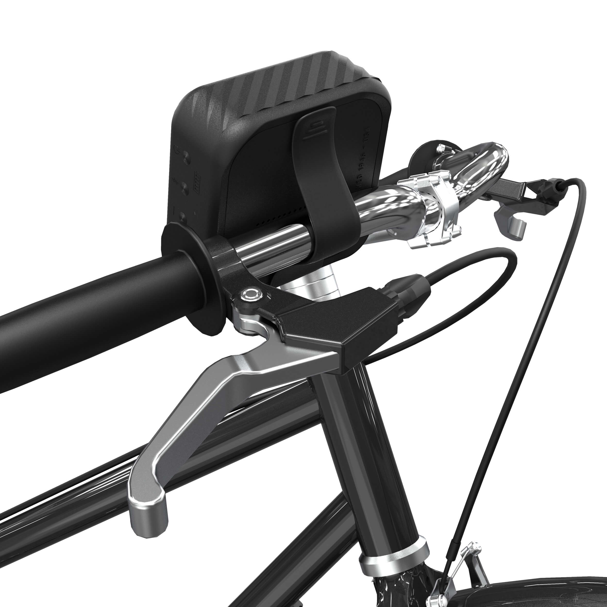 Der Klipsch Austin kann dank seiner Schutzklasse IP67 in jeder Umgebung eingesetzt werden: Er soll Staub und Sand vollständig widerstehen. Gegen Wasser sei er nicht nur geschützt, sondern vertrage sogar ein Eintauchen bis zu einem Meter Tiefe und 30 Minuten Dauer. Die gelochten Stahlgitter und die Gummierung rundherum sollen ihn zu einem sehr robusten Outdoor-Speaker machen. Ein flexibler Gummiriemen erlaubt die Befestigung an Fahrradlenkern, Gürteln oder Geländern. Mit dem Gewicht von nur 397 Gramm bei 4,4 Zentimetern Gehäusetiefe lässt er sich einfach in jeder Tasche oder jedem Rucksack verstauen.