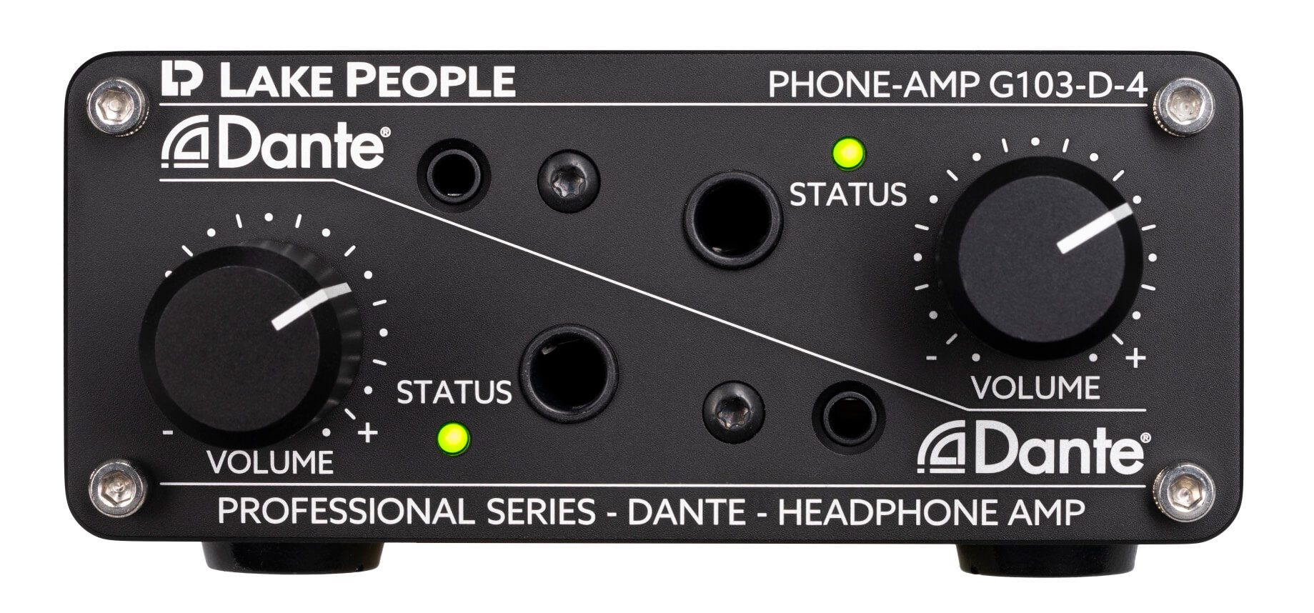 Mit seinen zwei separaten Verstärkerkanälen bietet der G103-D-4 maximale Flexibilität. Jeder Kanal kann mit einem individuellen Signal aus dem Dante-Netzwerk gespeist werden. Die Lautstärke wird dabei über präzise Alps-Potis geregelt, die exzellente Kanaltrennung und gleichmäßige Pegel garantieren. Die Verstärker sind mit Ausgängen im 6,3-mm- und 3,5-mm-Klinkenformat ausgestattet und unterstützen damit eine Vielzahl an Kopfhörermodellen.