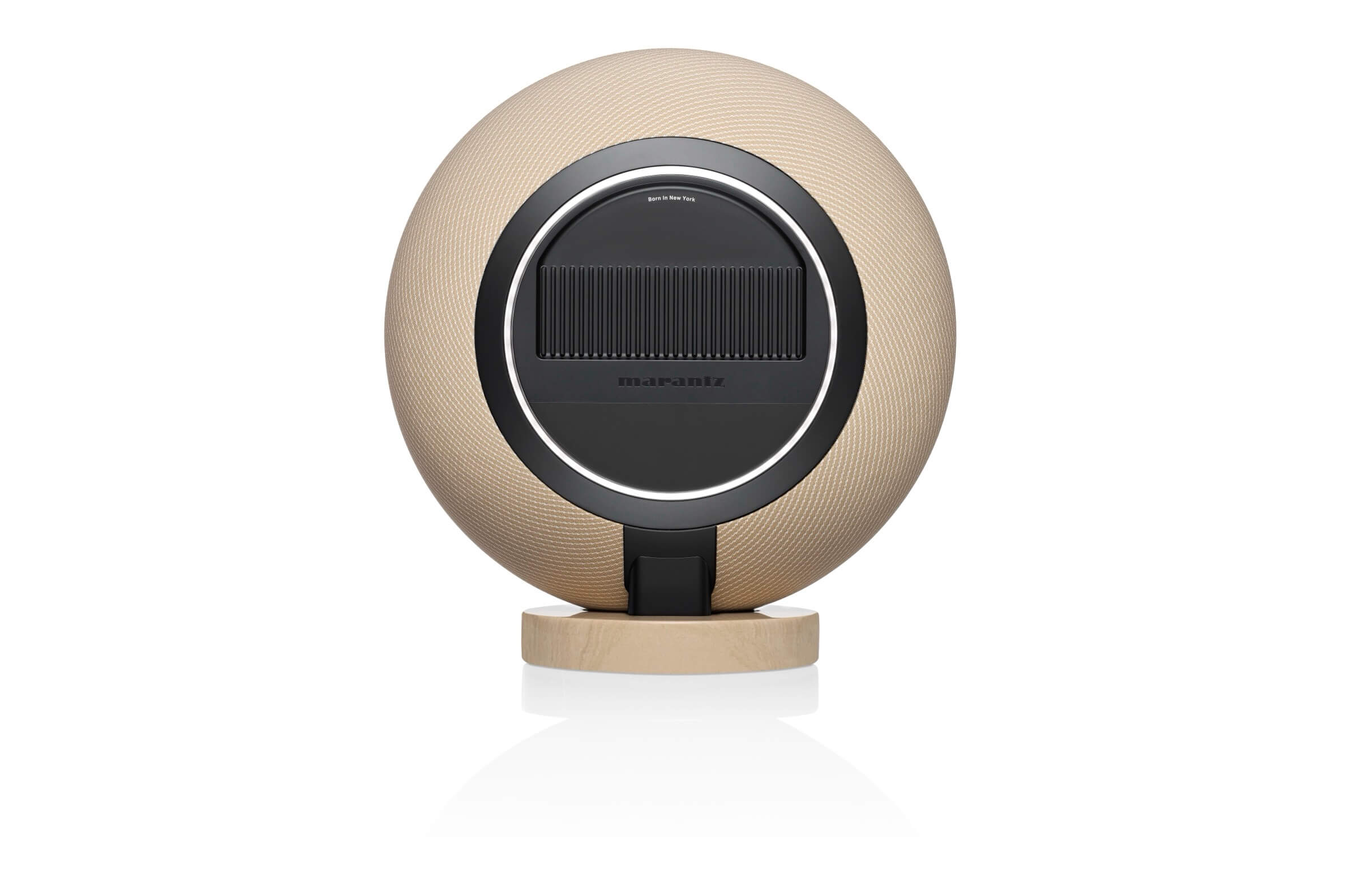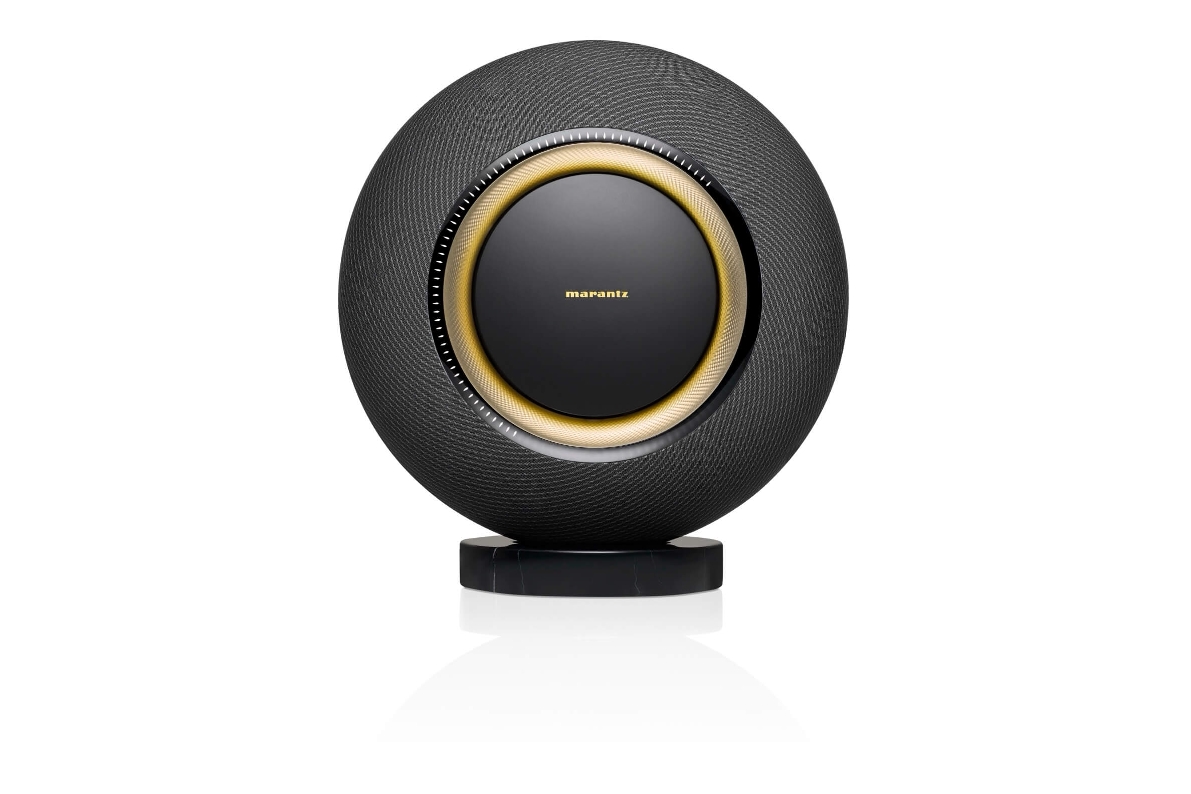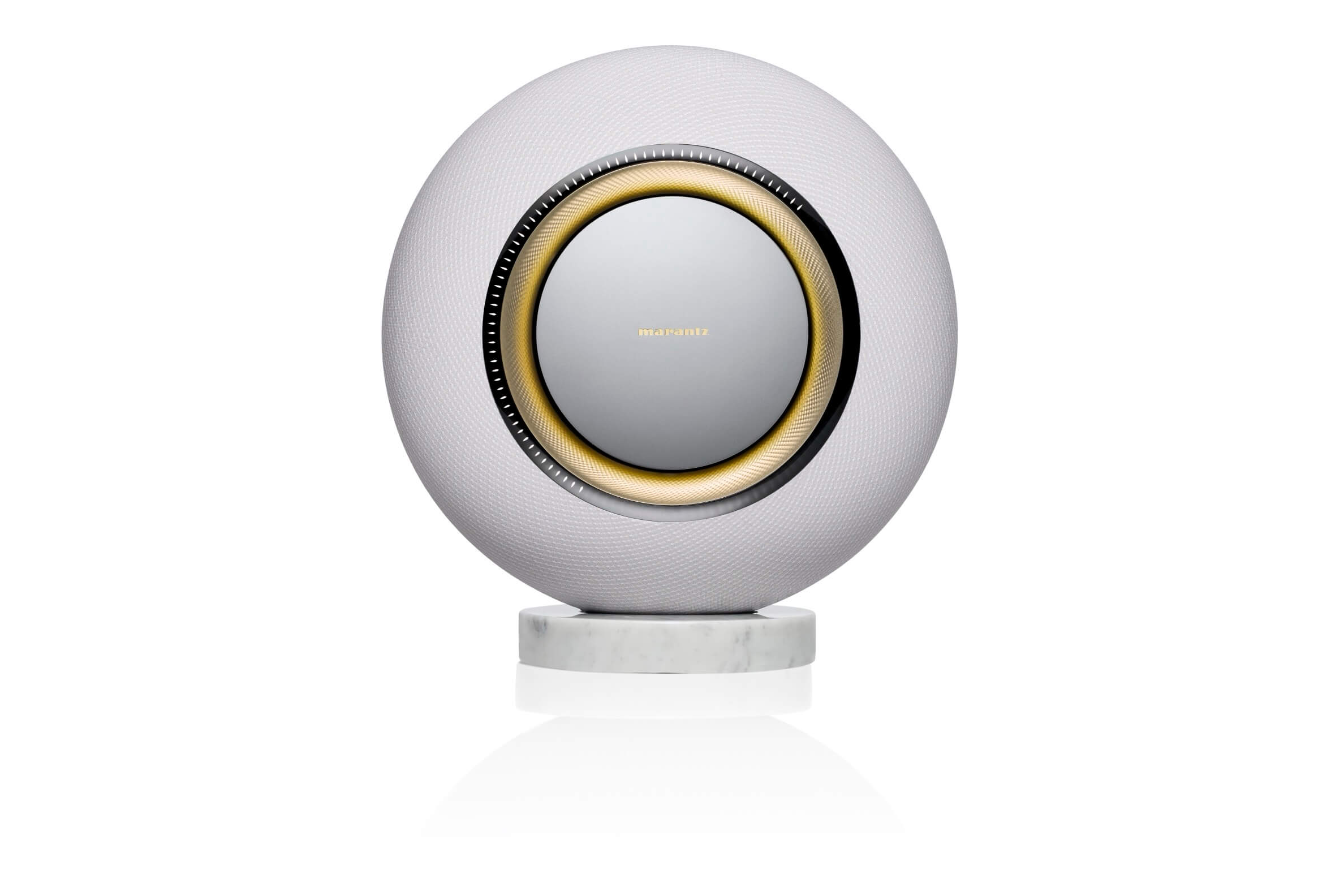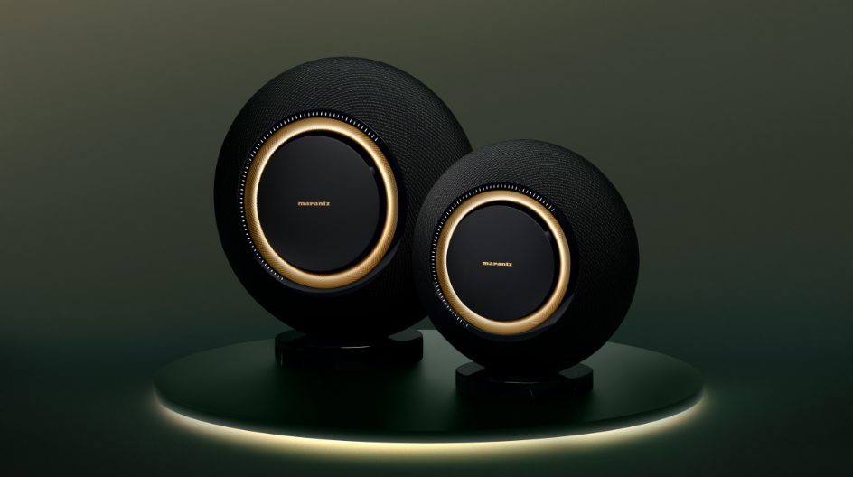 Die kabellosen Lautsprecher Horizon und Grand Horizon vereinen laut Eigenaussage die charakteristischen Design-Elemente von Marantz, wie das ikonische Bullaugen-Display, mit modernster Audiotechnologie. Die markante, runde Form und hochwertige Materialien wie der Marantz Radiance 360° Seamless EcoFiber, ein Stoff aus recyceltem Meereskunststoff, sorge für Eleganz und Nachhaltigkeit. Erhältlich in den Farben Midnight Sky, Moon Ray und Marantz Champagne, unterstreichen die Lautsprecher mit Naturmarmor-Sockeln ihre luxuriöse Ästhetik.