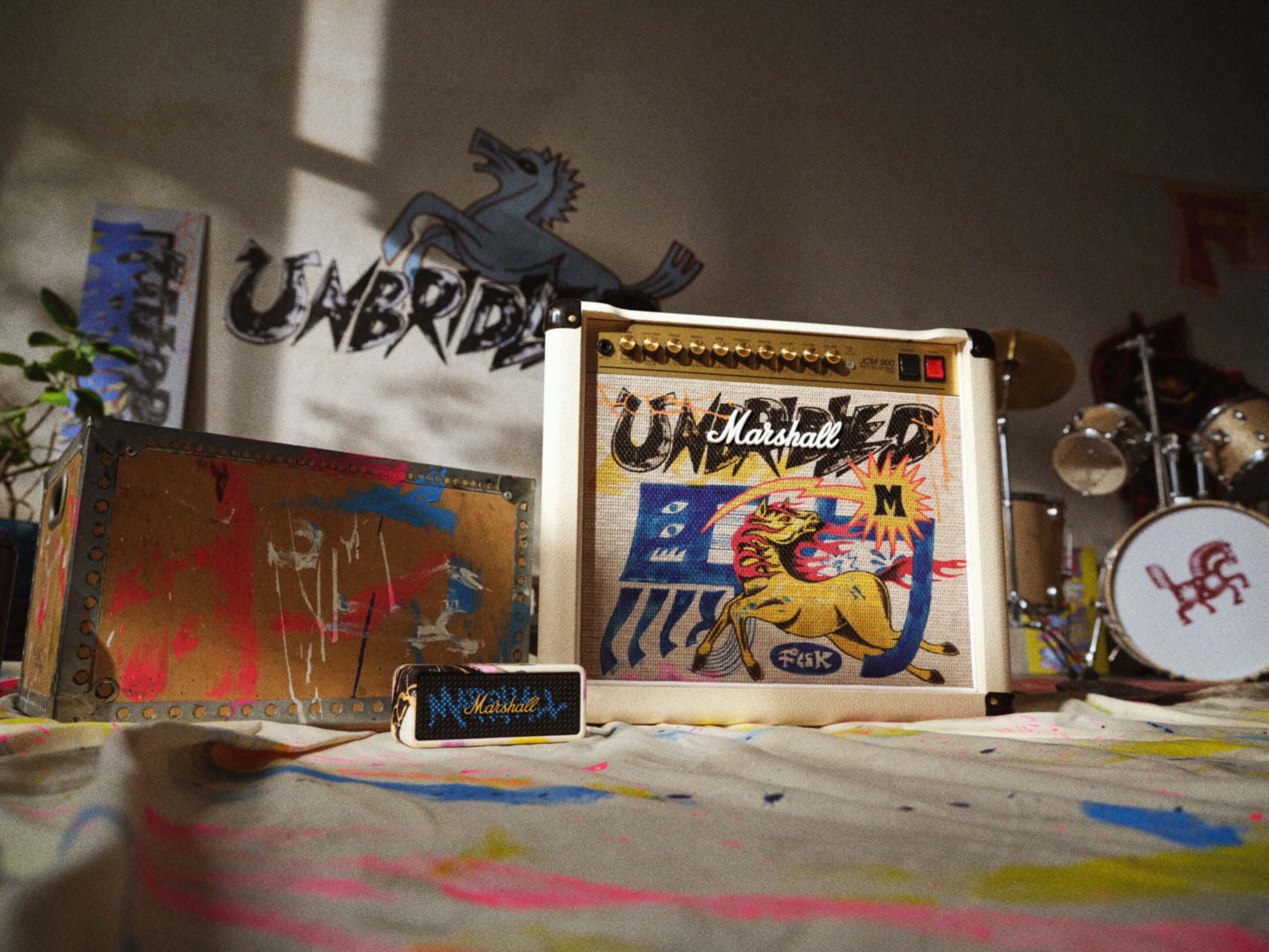 Zum vierten Mal in Folge arbeitet Marshall anlässlich des Lunar New Year mit einem chinesischen Künstler zusammen. Für 2026 fiel die Wahl auf FCCK aus Chengdu, dessen Arbeiten Illustration, Typografie und grafische Muster zu einem eigenständigen visuellen Stil verbinden. Inspiration für die Editionen liefere der chinesische Ausdruck „脱缰野马“ – sinngemäß ein wildes Pferd, das sich von seinen Zügeln befreit hat.