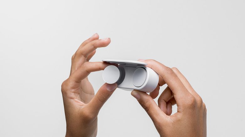 Dabei gehen die Microsoft Surface Earbuds glücklicherweise einen anderen Weg als Apples AirPods (zum Test) und integrieren Features, die vor allem Office-365-Nutzer glücklich machen könnten. Denn die ungewöhnlich großen Oberflächen sollen im Zusammenspiel mit Android-Devices weitergehende Touch-Eingaben erlauben, als das reine Regeln von Lautstärke, Anrufen und Co. Mit einem dreimaligen Tippen könnt ihr zum Beispiel Spotify direkt starten. Und wenn ihr Office 365 Power User seid, dann helfen euch die Earbuds bei dessen Bedienung: So lassen sich PowerPoint-Folien per Wischgesten weiterblättern oder aber ihr diktiert euren Text direkt in ein neues Word-Dokument. Dank hauseigenem Sprachassistenten Cortona sowie einer KI sollen sich sogar Dialoge in mehren Sprachen führen lassen – eine Echtzeitübersetzung (ähnlich wie bei den Google Pixel Buds – zum Test) macht’s möglich.