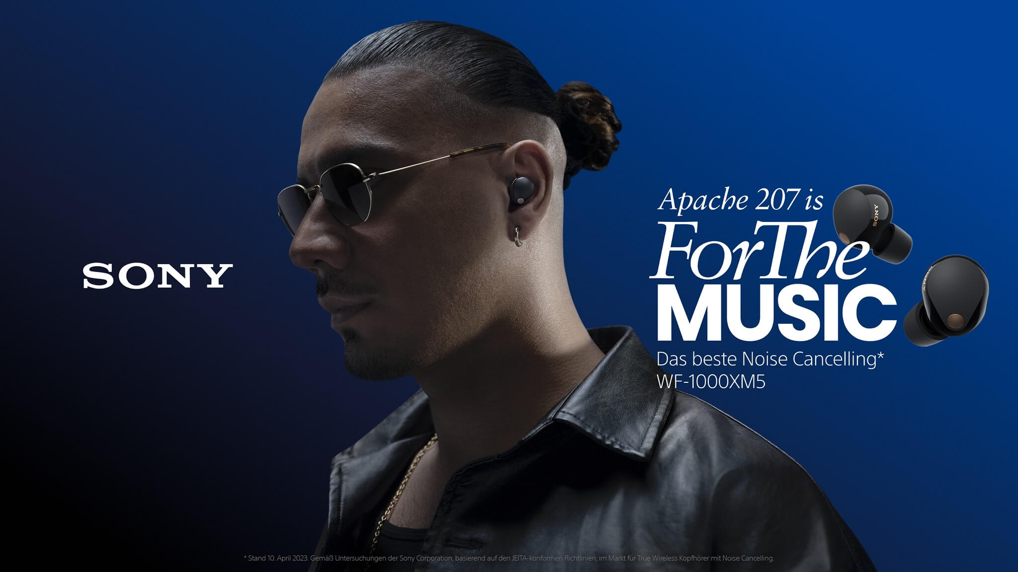 Mit Apache 207 hat Sony das passende Gesicht zur neuen Audiokampagne, die parallel zum Launch des Kopfhörers WF-1000XM5 läuft. „Musik verbindet durch die Geschichte, die dahinter erzählt wird“, sagt Apache 207 in dem aktuellen Kampagnenvideo und unterstreicht damit das im Zentrum stehende Gefühl der Verbundenheit durch die Musik.