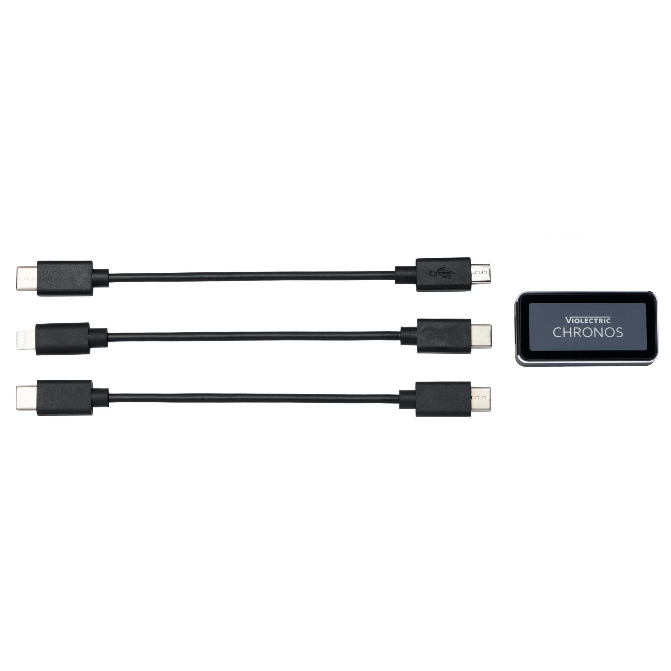 Auch wenn er mit seinen Abmessungen von lediglich 44,5 mal 24 mal 10 Millimetern buchstäblich in jede Westentasche passt, will Chronos mit Klangeigenschaften größerer, stationärer Geräte überzeugen: Sein Digital-Analog-Wandlerchip besitzt eine Auflösung von 384 kHz bei 32 Bit und decodiert auch DSD 256. Eine Dynamik von typisch 130 dB und niedrigste Verzerrungen sollen edlen Klang an jedem Ort der Welt verfügbar machen. Die Erfahrung von Violectric mit audiophilen Kopfhörerverstärkern zeigt sich auch an den technischen Werten von Chronos: zwei mal 30 mW Ausgangsleistung an 32 Ohm beziehungsweise zwei mal 5 mW an 600 Ohm. So können anspruchsvollere Kopfhörer, an denen die integrierten Verstärker und Wandler von Mobilgeräten oft scheitern, auch unterwegs problemlos betrieben werden.