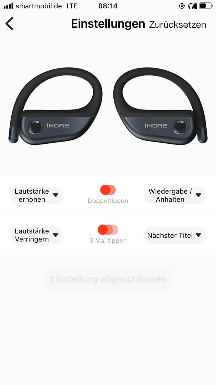 Über die kostenlose App „1More Music“ für iOS und Android lassen sich ergänzende Funktionen aufrufen und konfigurieren. Dazu gehören unter anderem Updates der Firmware, ein Modus mit niedrigerer Latenz für Videos und Spiele sowie besagte Konfiguration der Touch-Funktionen. Ebenfalls an Bord ist ein Equalizer mit zwölf nicht editierbaren Presets, die ein schnelles Umschalten auf andere Klangcharakteristika bieten. Die Möglichkeit, den Klang wunschgemäß anzupassen, habe ich jedoch vermisst.