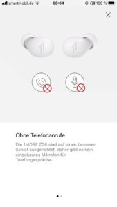Der konzeptionelle Fokus liegt somit eindeutig auf der Nutzung als Schlafhilfe. Entsprechend warten die Sleepbuds Z30 auch mit einer eher ungewöhnlichen Minimalausstattung für einen aktuellen Bluetooth-Kopfhörer auf. So muss man gänzlich auf Touch- und Automatikfunktionen verzichten, kann also weder die Steuerung der Musik noch die Lautstärke am Kopfhörer kontrollieren. Des Weiteren sind in den Sleepbuds Z30 keine Mikrofone verbaut, weshalb Telefonate nicht möglich sind. Auch auf ein Noise Cancelling verzichten die Testgeräte im Unterschied zu den etwas teureren ComfoBuds Mini.