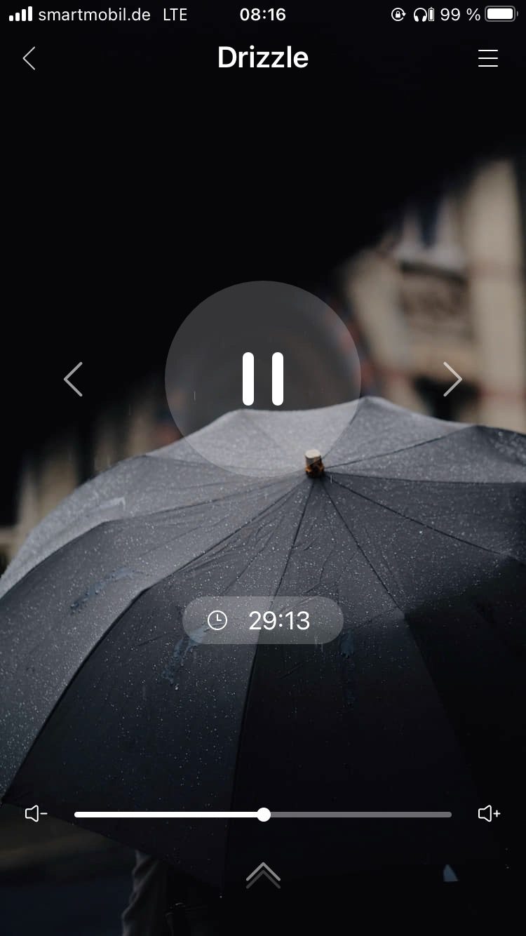 Die Kopfhörer sitzen tatsächlich ungewöhnlich bequem und fast unmerklich im Ohr. Vier Passstücke sorgen für einen guten Sitz. Auch über längere Zeiträume drückt es nicht. Für die Schlafunterstützung wechselt man in der App von der generellen Musikwiedergabe zu besagten beruhigenden Naturgeräuschen und legt für seine Auswahl eine Wiedergabedauer zwischen 30 und 150 Minuten fest. Ob sich die Sleepbuds Z30 beim Liegen, wie versprochen, unauffällig verhalten, kommt auf die Ohrform und spezifische Schlafstellung an. In meinem Fall entstand in seitlicher Liegeposition durch den Kissenkontakt des Kopfes durchaus ein Druckgefühl, da die Ohrhörer in Richtung Ohr gepresst wurden.
