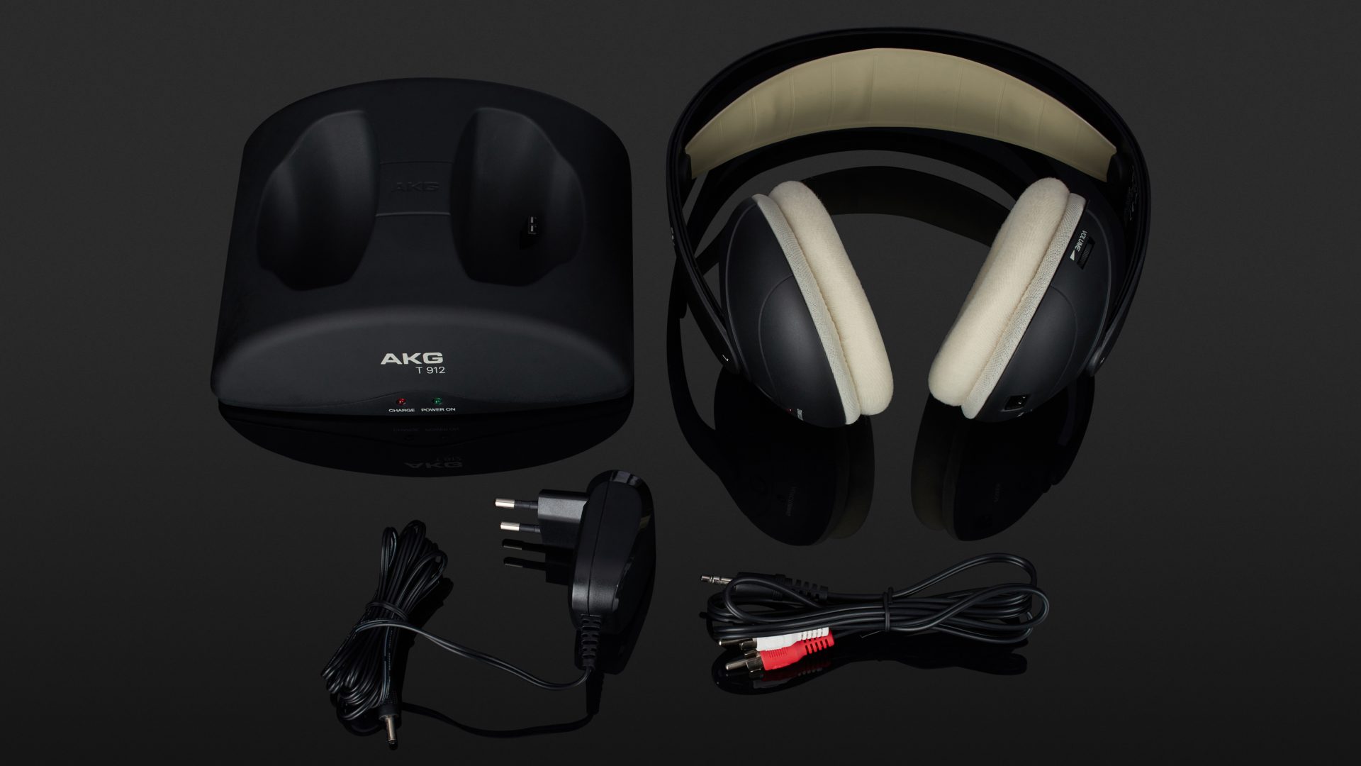 Neben dem Hörer und der Sendestation liefert AKG ein Verbindungskabel von 3,5-mm-Klinke auf Stereo-Cinch, einen Netzadapter für die Stromversorgung der Sendestation sowie zwei AAA-Akkus, die in den Kopfhörer eingelegt werden müssen. Um den K 912 mobil zu machen, muss man hingegen kreativ werden, da eine Tragetasche oder Ähnliches leider fehlt.