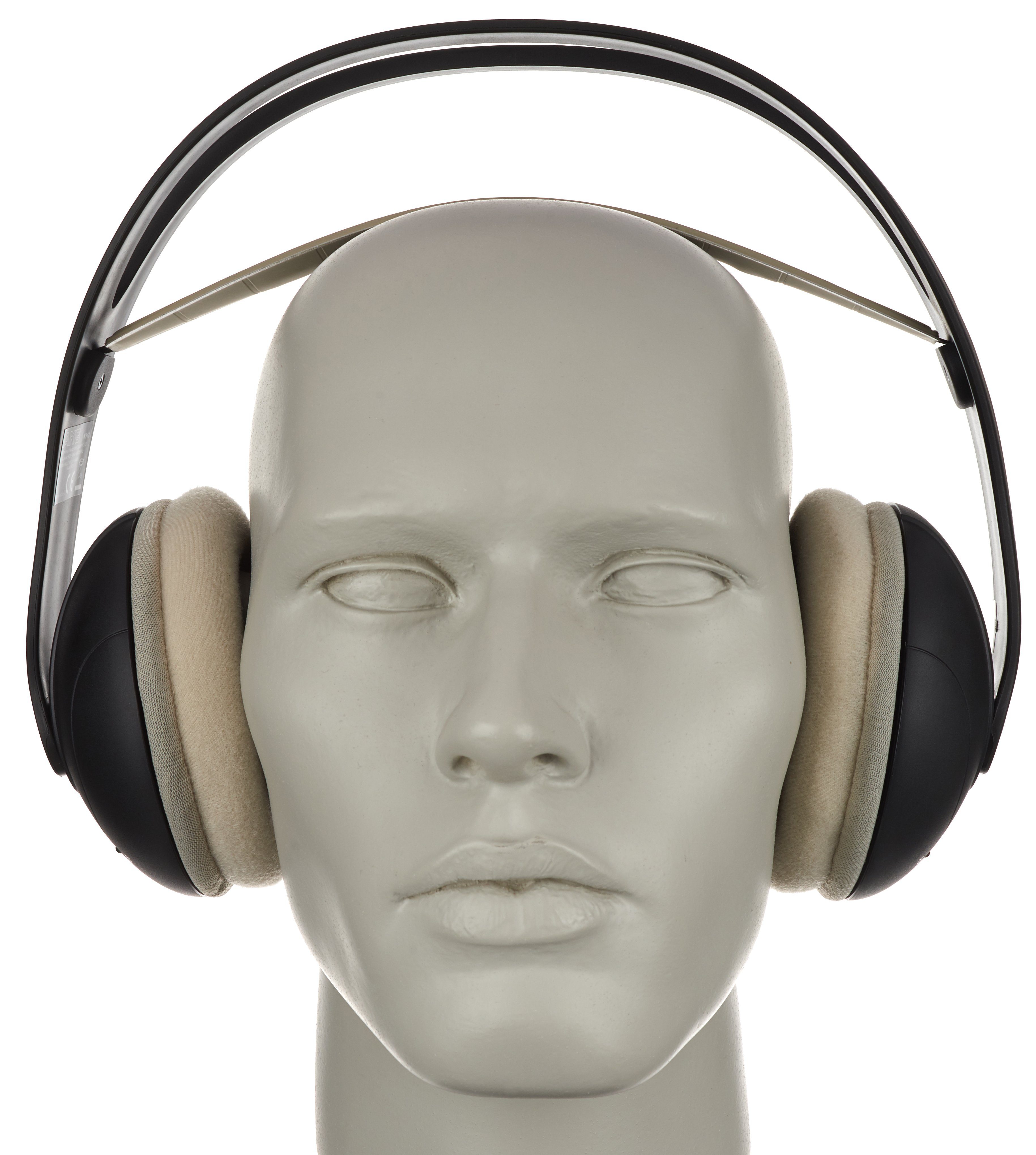 Die Ohr-umschließenden Muscheln sind mit einem Kugelgelenk am Bügel fixiert und bieten genug Bewegungsspielraum um den Kopfhörer auch nur über eine Ohr bequem zu tragen. Das Kopfband ist ein zwischen den Innenseiten des Bügels gespanntes Gummiband mit Kunstlederüberzug, das sich auch auf die entsprechende Kopfhöhe ausdehnt.