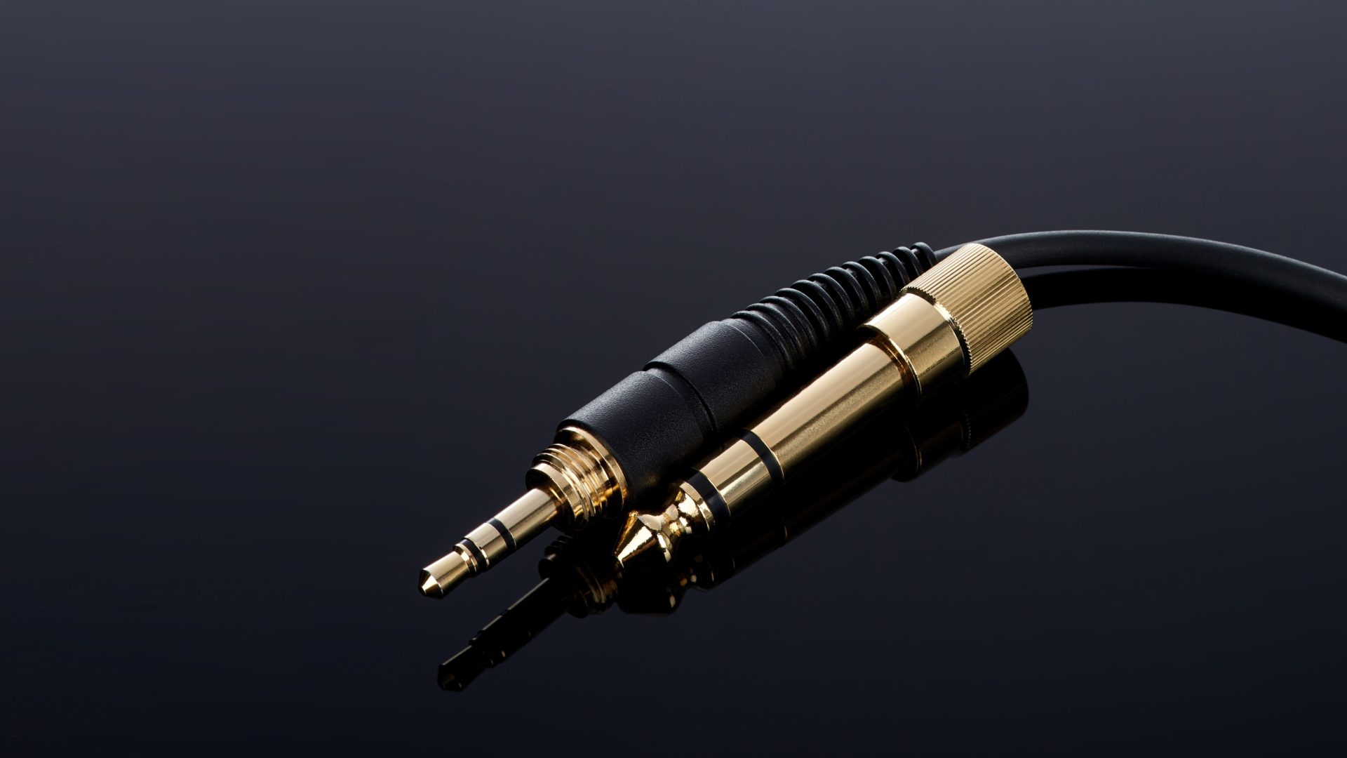 Das Anschlusskabel (Spiralkabel, dehnbar von 110 cm bis ca. 550 cm), ist leider fest mit der linken Ohrmuschel verbunden – eine auswechselbare Lösung wäre in dieser Preisklasse nicht zu viel verlangt gewesen, aber nun gut.