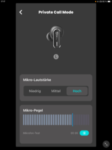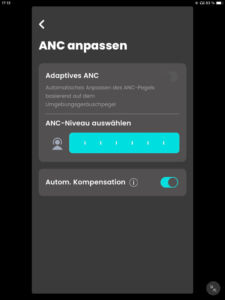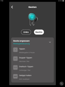 Ungewöhnlich ist, dass die Touch-Steuerung über die App nicht an die eigenen Vorlieben angepasst werden kann. Anstelle dessen stehen mit „Umgebungskontrolle“, „Wiedergabe“ und „Lautstärke“ drei vorgefertigte Profile für zwei Hörer zur Auswahl. Ab Werk sind die Umgebungskontrolle und Wiedergabesteuerung zugewiesen, wodurch keine Möglichkeit besteht, die Lautstärke zu regeln. Ein Manko, das sich derzeit auch nicht beheben lässt, da ansonsten auf die Umgebungskontrolle oder Wiedergabesteuerung verzichtet werden müsste. Eigene Anpassungsmöglichkeiten stellen daher eine sehr wünschenswerte Option für ein Update dar.