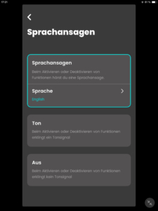 Gleich mehrere Optionen dienen zum Anpassen der Gesprächssituation beim Kommunizieren. Sowohl für das Gegenüber als auch für die eigene Stimme bestehen jeweils drei Spracheinstellungen, ergänzt von einer regelbaren Mithörfunktion und einem automatischen Schallpegel-Optimierer. Des Weiteren verfügt die App über einen Passform-Test und eine Suchfunktion, die durch einen lauten Piepton beim Auffinden der Hörer behilflich sein kann. Abschließend lassen sich noch Firmware-Aktualisierungen für Hörer und Dongle vornehmen.