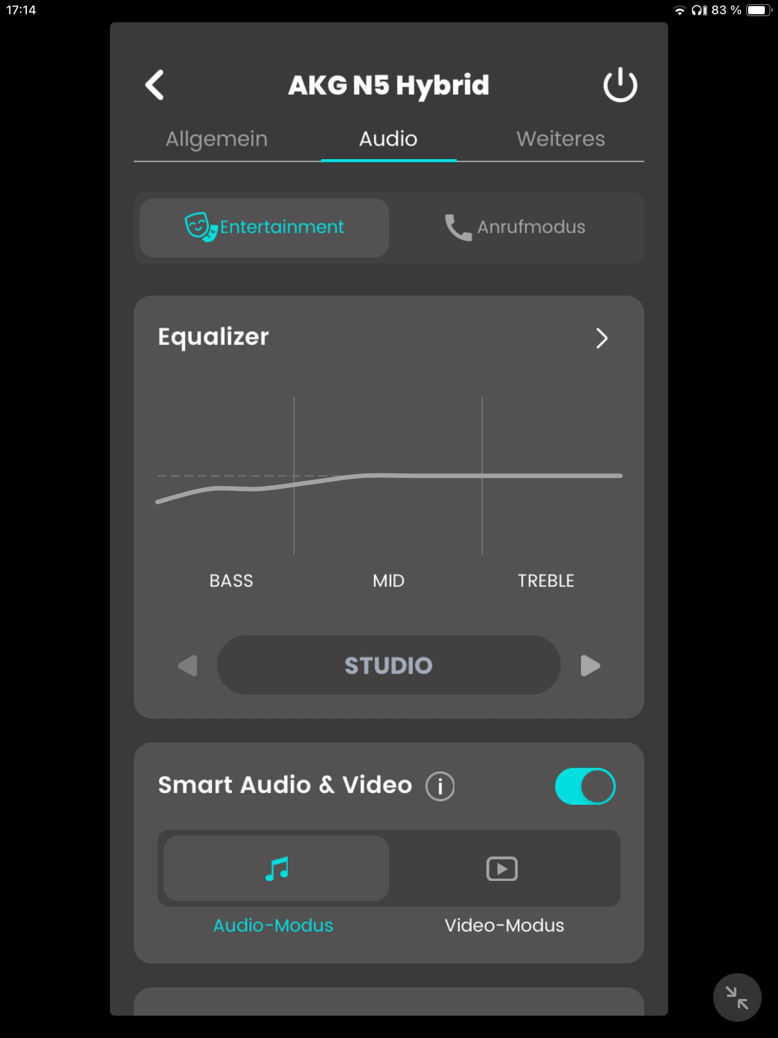 Besonders an den AKG N5 Hybrid ist, dass sie sowohl per Bluetooth als auch latenzarm über den USB-C-Dongle betrieben werden können. Der 2,4-GHz-Dongle ermöglicht darüber hinaus eine hochauflösende Wiedergabe, was bei Geräten, die keine hochwertigen Audiocodecs unterstützen, Vorteile bietet und das Einsatzspektrum erweitert. Schade ist nur, dass das Umschalten zwischen Bluetooth und Dongle im dualen Betrieb etwas umständlich erscheint und Abstriche bei der App gemacht werden müssen.