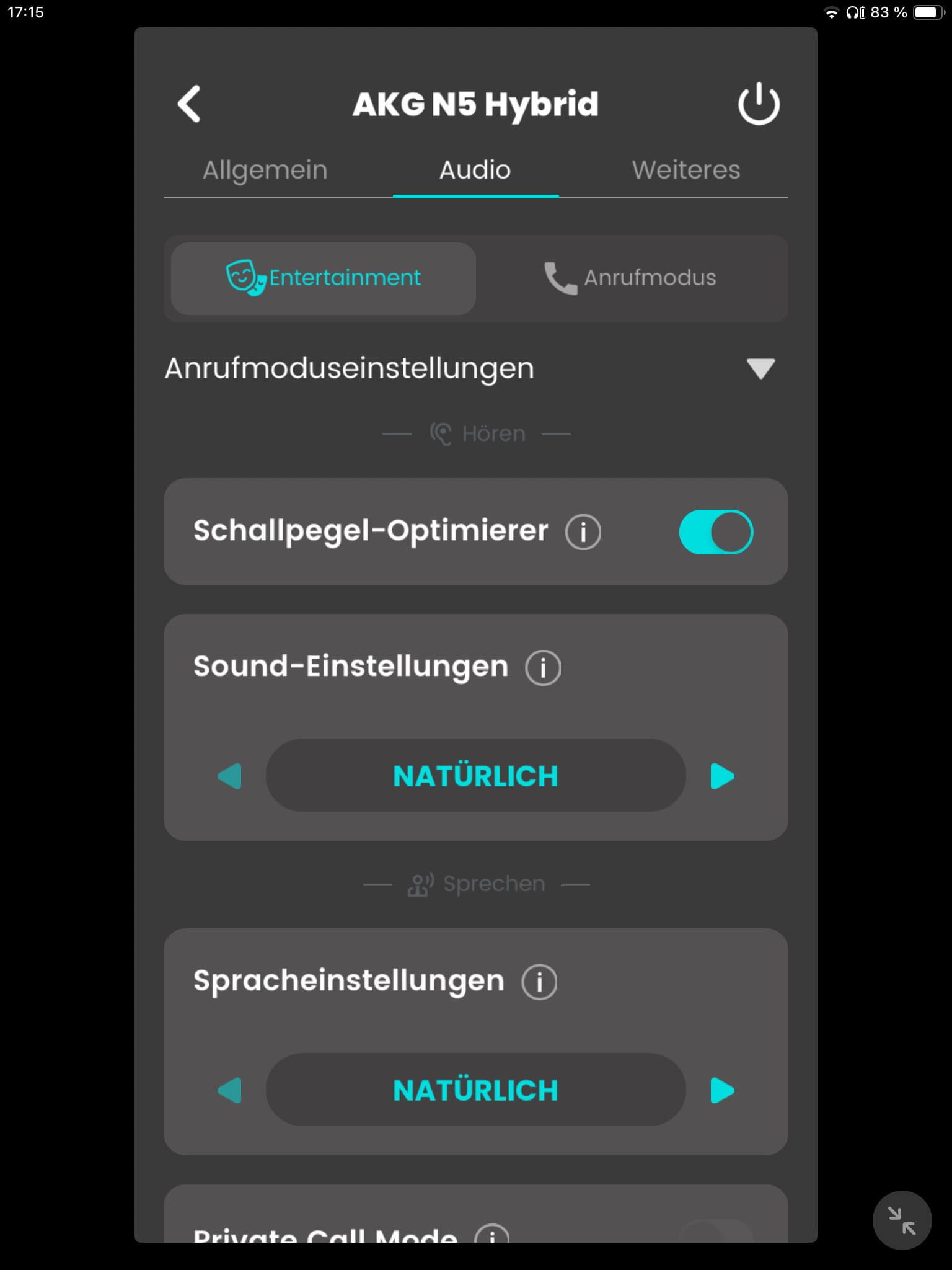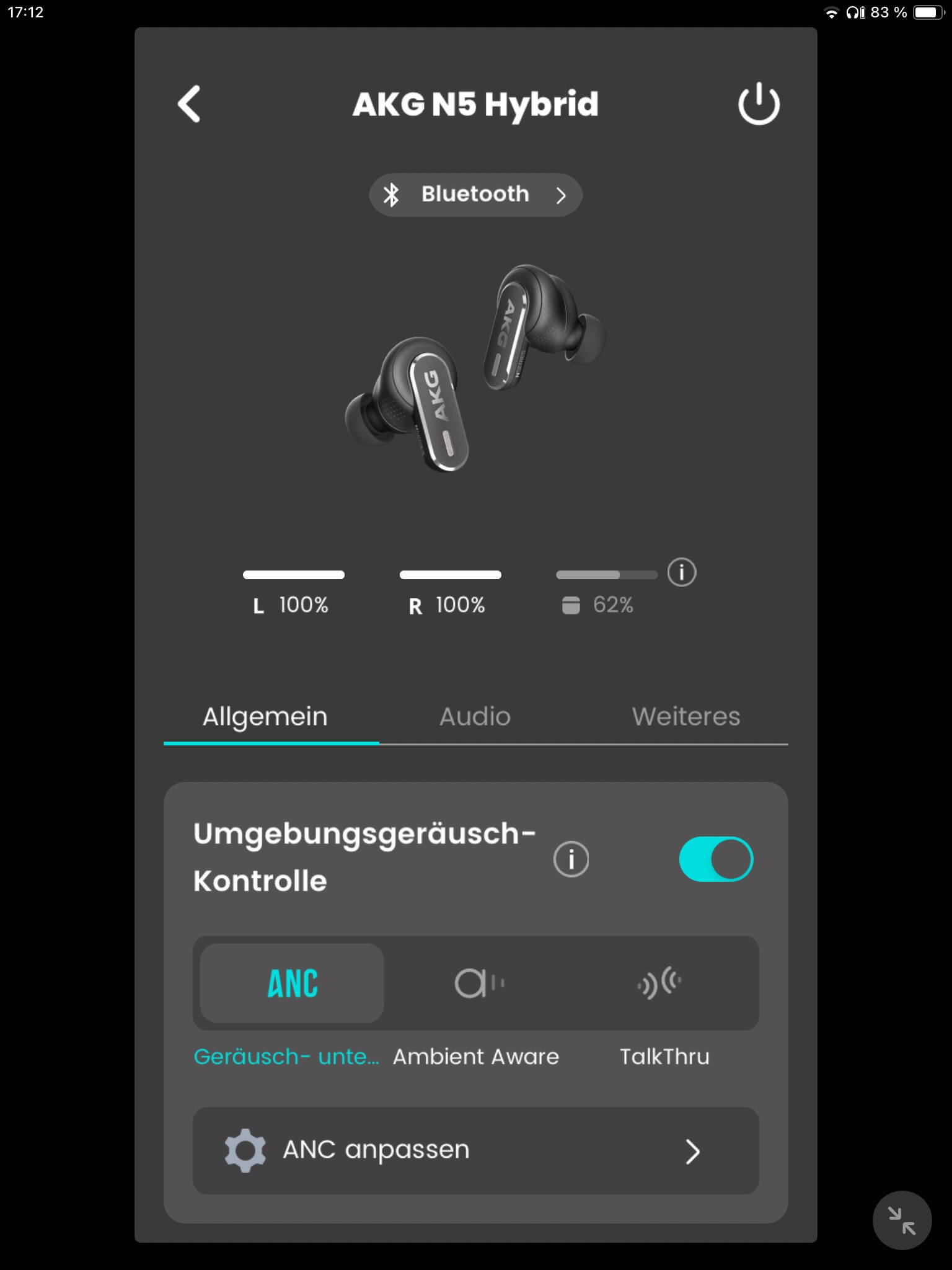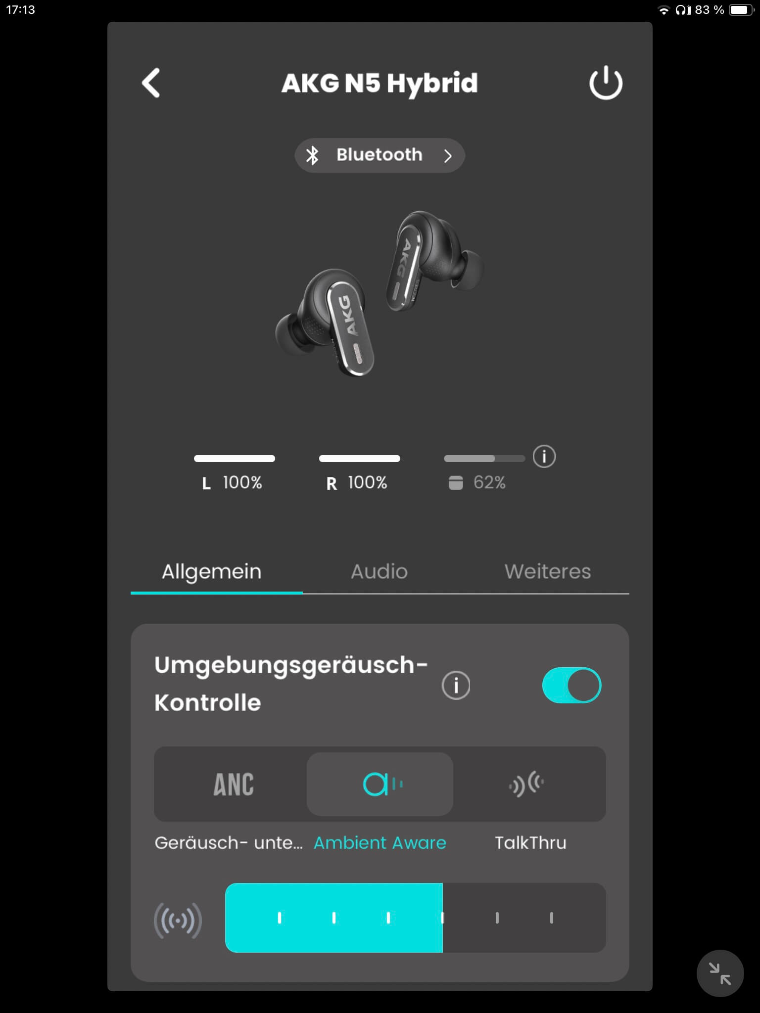 Die AKG N5 Hybrid unterstützen eine einseitige Nutzung im Single-Betrieb und verfügen über eine Trageerkennung, die sich per App nach Bedarf ab- oder zuschalten lässt. Nicht vorgesehen ist dagegen ein manuelles Ein- und Ausschalten der Hörer über die Touch-Oberflächen, wodurch das Case stets benötigt wird.