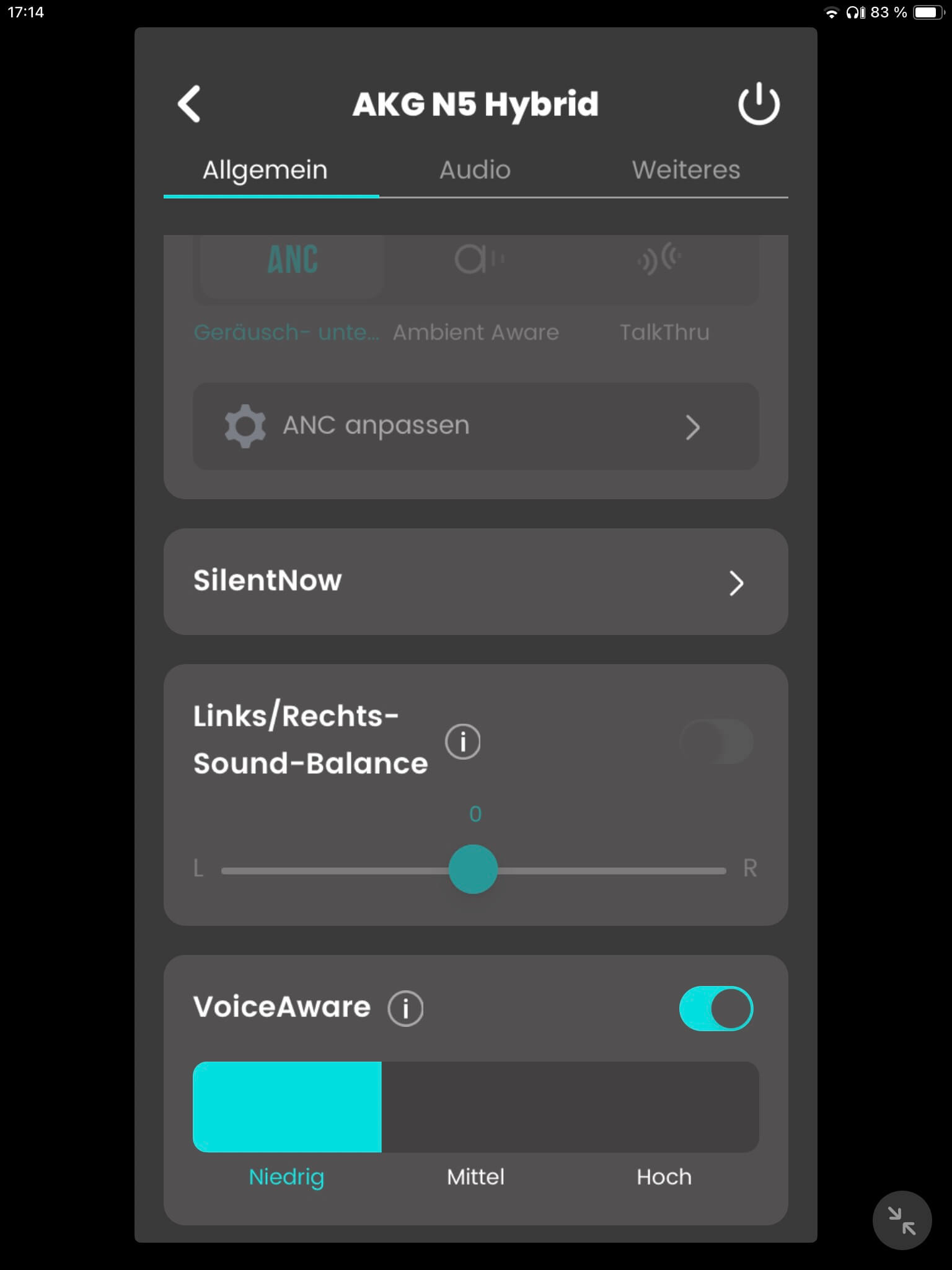 Geräuschunterdrückung (ANC), Ambient-Aware-Modus und TalkThru-Funktion