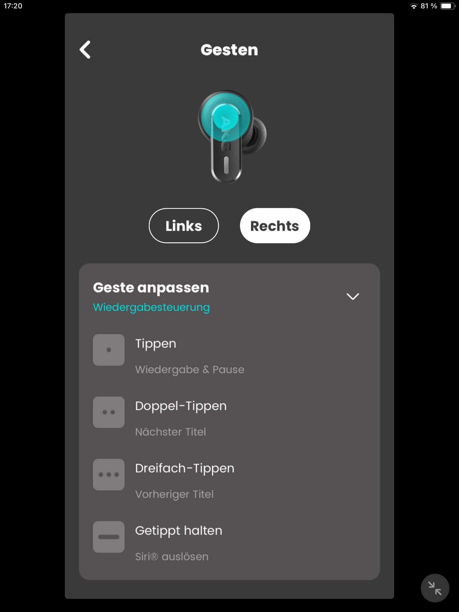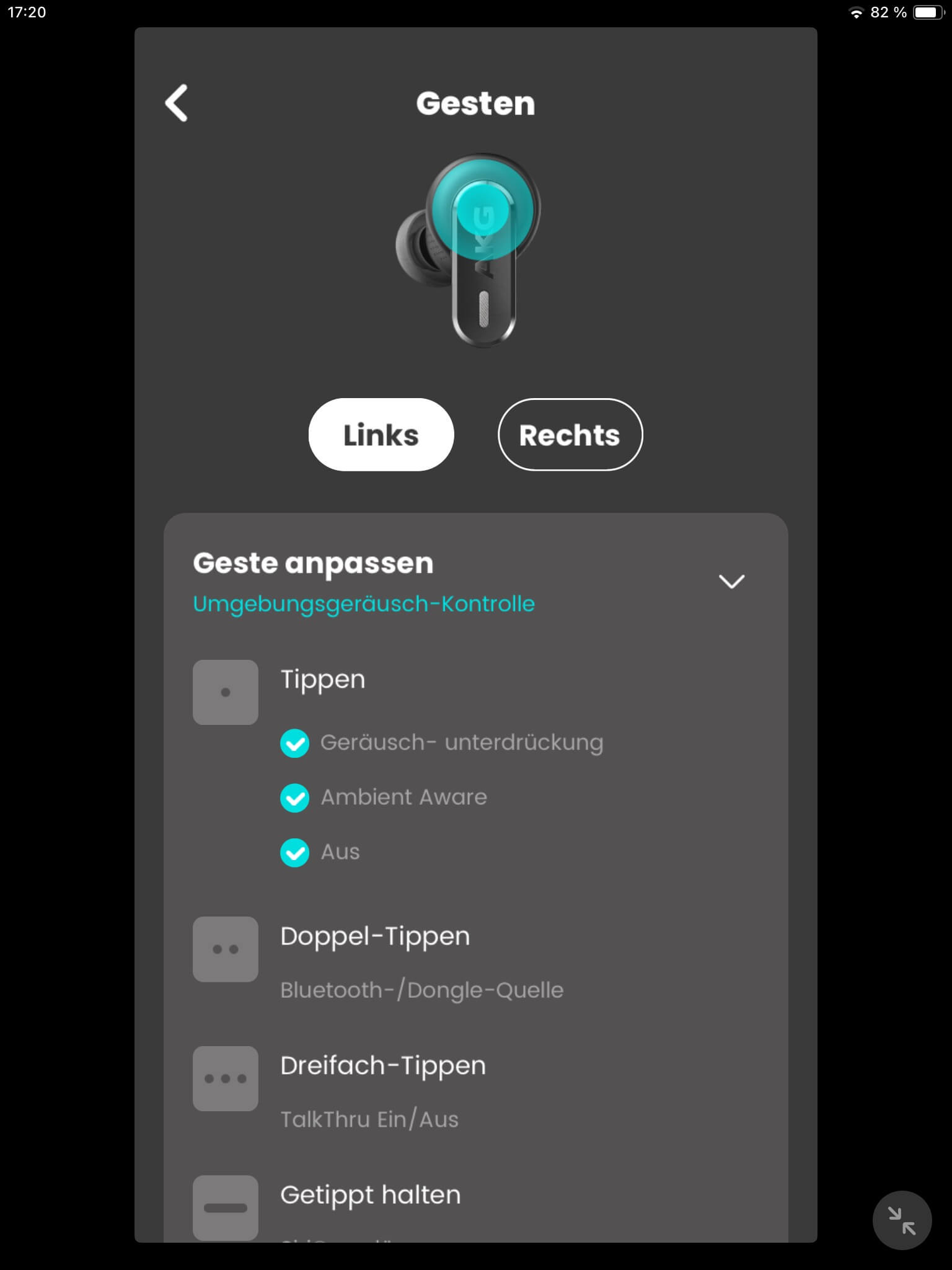 Ungewöhnlich ist, dass die Touch-Steuerung über die App nicht an die eigenen Vorlieben angepasst werden kann. Anstelle dessen stehen mit „Umgebungskontrolle“, „Wiedergabe“ und „Lautstärke“ drei vorgefertigte Profile für zwei Hörer zur Auswahl. Ab Werk sind die Umgebungskontrolle und Wiedergabesteuerung zugewiesen, wodurch keine Möglichkeit besteht, die Lautstärke zu regeln. Ein Manko, das sich derzeit auch nicht beheben lässt, da ansonsten auf die Umgebungskontrolle oder Wiedergabesteuerung verzichtet werden müsste. Eigene Anpassungsmöglichkeiten stellen daher eine sehr wünschenswerte Option für ein Update dar.