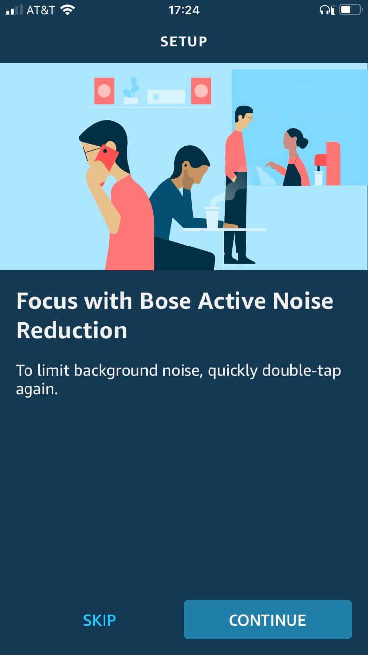 Das Noise Cancelling wurde von Bose lizenziert. Die Schaltung ist allerdings nicht regelbar, erfüllt ihren Zweck aber durchaus effektiv. Die Intensität und Konfigurierbarkeit von Mitbewerber Sony WF-1000XM3 (zum Test) wird hier zwar nicht erreicht, sehr wohl aber das Schaffen eines Ruhebereichs in lauteren Umgebungen wie Flügen oder Zugfahrten, bei der insbesondere statische und tieffrequente Geräusche über die ohnehin gute passive Außenisolierung hinaus weiter abgesenkt werden. Dazu besteht über die Passthrough-Funktion die Möglichkeit, Umgebungsgeräusche schaltbar auf die Ohren zu geben, um eine bessere Wahrnehmung der Umgebung und eine Kommunikation zu ermöglichen. Die Intensität dieser Schaltung ist über die App in fünf Stufen regelbar. Dazu lässt sich entscheiden, ob die Rauschunterdrückung gleichzeitig abgeschaltet wird.