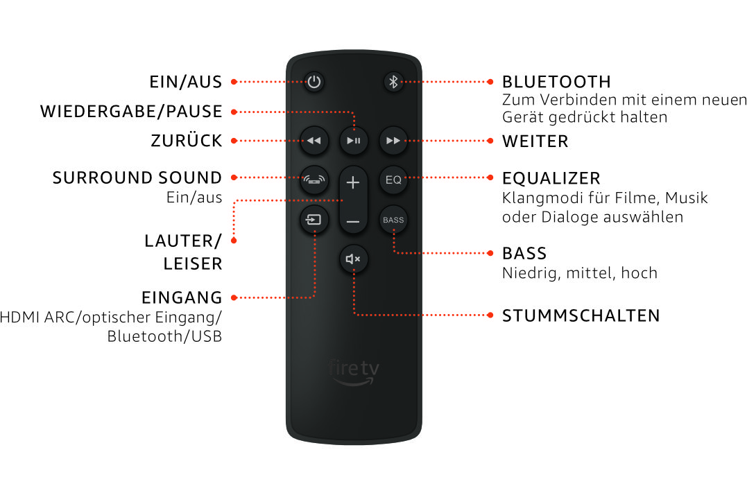 - Aufbau und Bedienelemente der Amazon Fire TV Soundbar 2.0