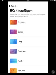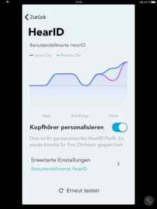 Grundsätzlich laden die Liberty Air 2 Pro dazu ein, das Hörerlebnis auf unkomplizierte Art und Weise zu personalisieren, indem über die App ein Hörtest absolviert wird, auf dessen Grundlage Disbalancen zwischen linkem und rechten Ohr oder eine altersbedingte Abnahme des Hörvermögens ausgeglichen werden. Besonders hervorzuheben ist hierbei, dass die generierte HearID per EQ nachbearbeitet und den persönlichen Vorlieben entsprechend angepasst werden kann. Dieses persönliche Klangprofil wird anschließend dauerhaft auf den Hörern abgespeichert und ist somit unabhängig von der App permanent aktiv. Darüber hinaus besteht die Möglichkeit, das erzeugte Profil zu deaktivieren, wodurch ein direkter A/B-Vergleich zum Grundklang besteht, was sehr gut gelöst ist und das Potenzial der individuellen Klanganpassung demonstriert. Hierbei überzeugen sowohl der Hörtest als auch der EQ, die im Zusammenspiel für einen merklichen Zugewinn an Homogenität, Klarheit und Räumlichkeit sorgen können.