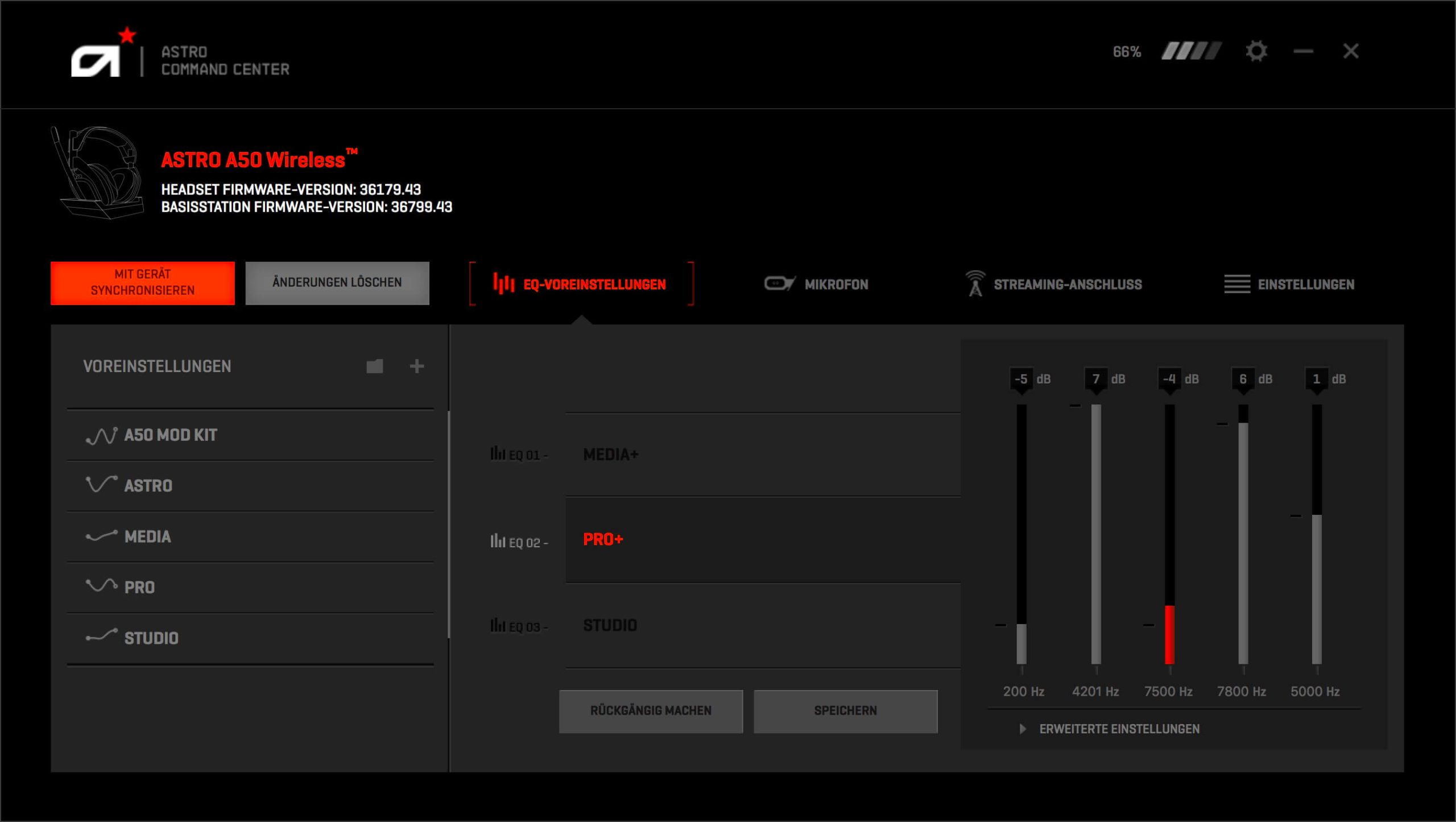 Out of the box ist die Qualität des unidirektionalen Flip-to-Mute-Mikrofons eher durchschnittlich, denn es klingt etwas dumpf. Eine Analyse mit dem Spektrometer zeigt, dass der für die Sprachverständlichkeit wichtige Obertonbereich zwischen sieben und neun Kilohertz fehlt. Diese Frequenzen bräuchte es aber, um der eigenen Stimme Brillanz zu verleihen. Leider hilft uns hier das Astro Command Center nicht weiter, da kein Equalizer zur Anpassung bereitgestellt wird, und auch ein Umschalten der Mikrofon-Presets verbessert das Ergebnis nur ein wenig. Dennoch ist eine Sprachverständlichkeit stets gegeben: Via Discord, Skype oder Zoom verstand uns das andere Ende der Leitung immer problemlos, wenn auch nicht kristallklar.