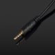 Die Gondeln, ganz in Schwarz gehalten, zeigen nur das Herstellerlogo und lassen sich bei Bedarf nach unten klappen. An der linken Seite finden wir die Miniklinkenbuchse für das steckbare Mikrofon sowie das einzige Bedienelement, ein kleiner Schalter zum Stummschalten des Mikros. Fest verbunden mit den beiden Gondeln ist das 1,4 Meter lange und stoffummantelte Kabel, das nach ca. 23 Zentimetern zusammengeführt wird und schließlich in einer vierpoligen Miniklinke endet. Aufgrund der Festinstallation ist das Kabel bei Bruch leider nicht austauschbar, es hinterlässt allerdings einen sehr stabilen und wertigen Eindruck und dürfte auch härtere Gangarten aushalten.
