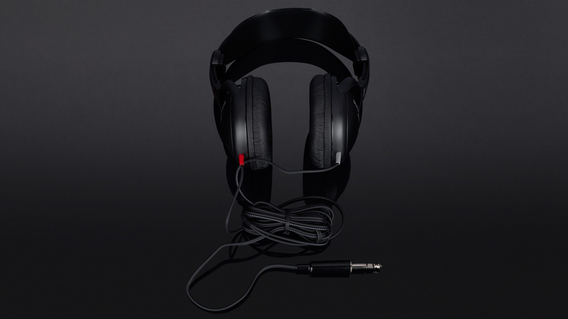 Das Kabel samt 6,35 mm Klinkenstecker ist fest montiert und teilt sich am oberen Ende in ein L- und ein R-Kabel auf, die Kabelführung ist also leider nicht einseitig. Mit 3 Metern Länge ist das Kabel für die Nutzung zu Hause und im Studio ausreichend lang, da es aber nicht auswechselbar ist, muss man bei der mobilen Nutzung einen ganzen Haufen Kabel in der Tasche mit spazieren führen.