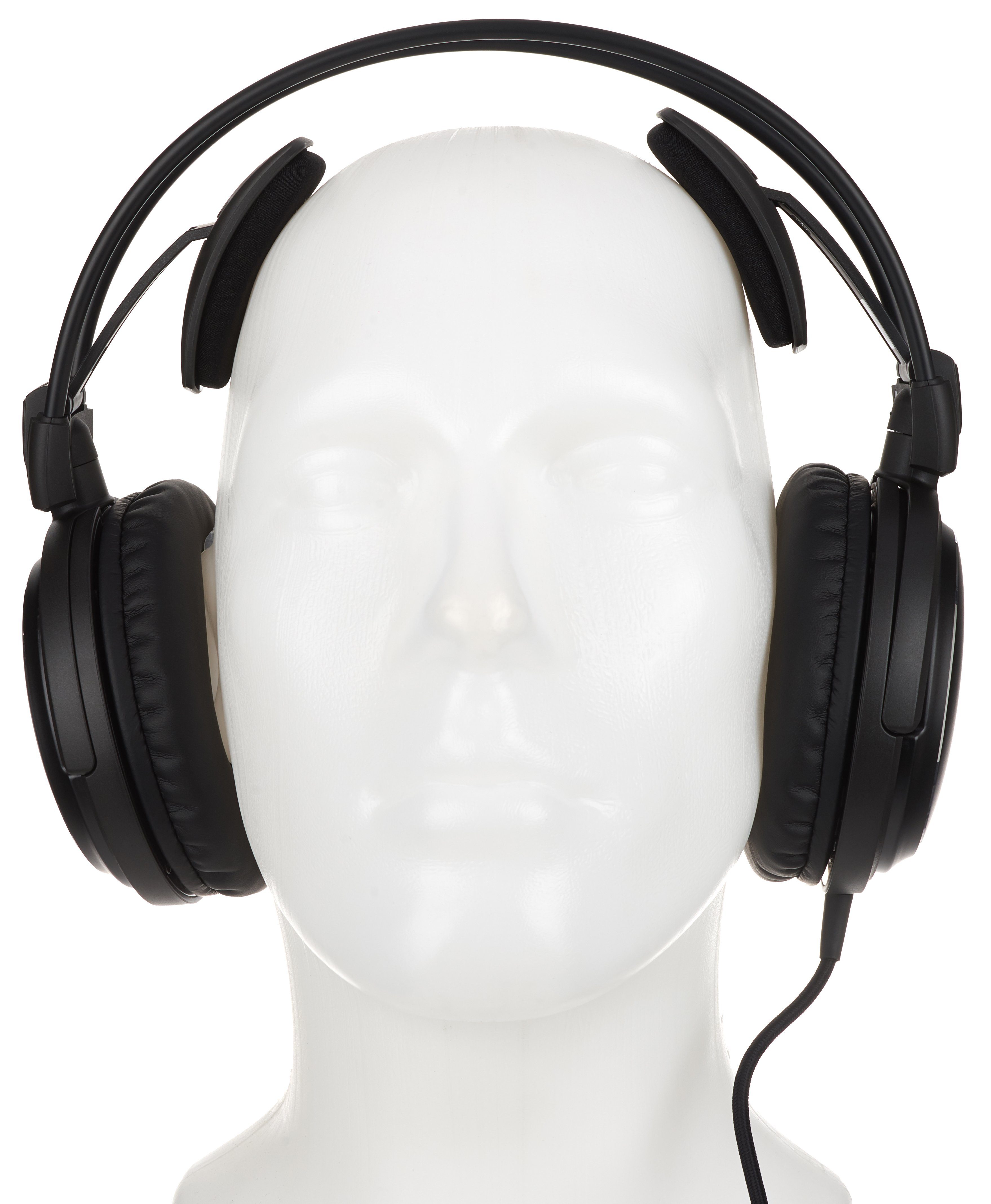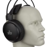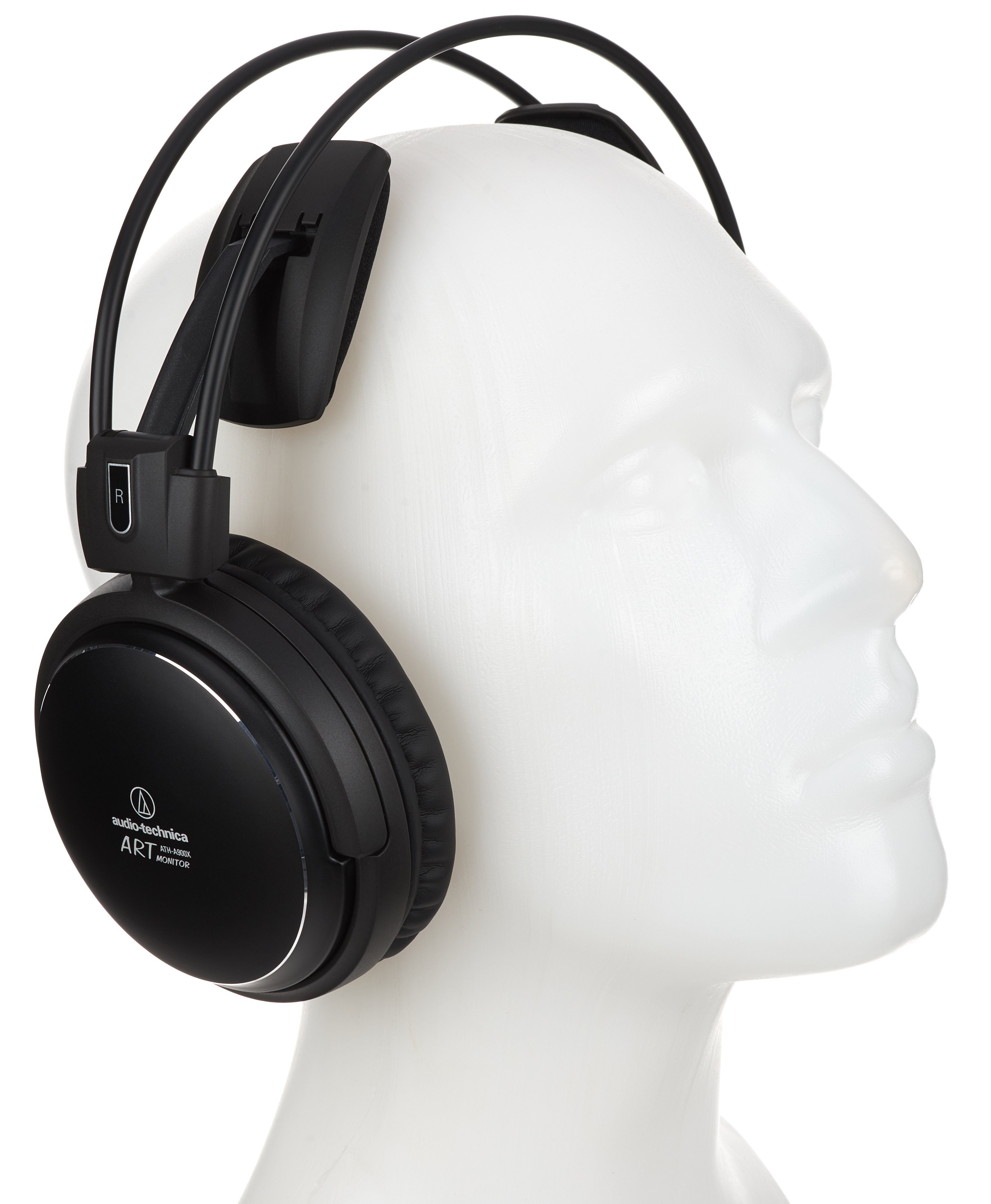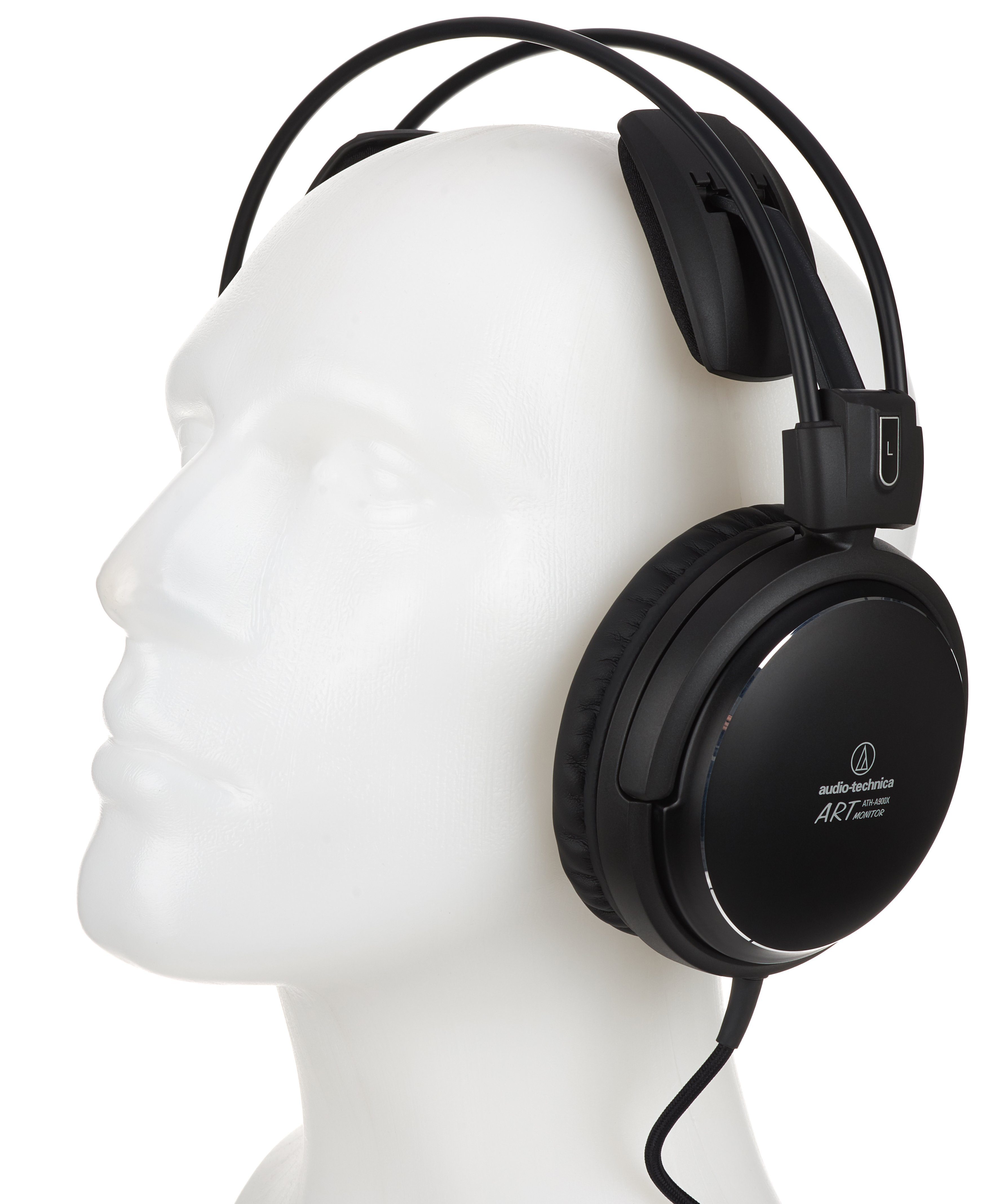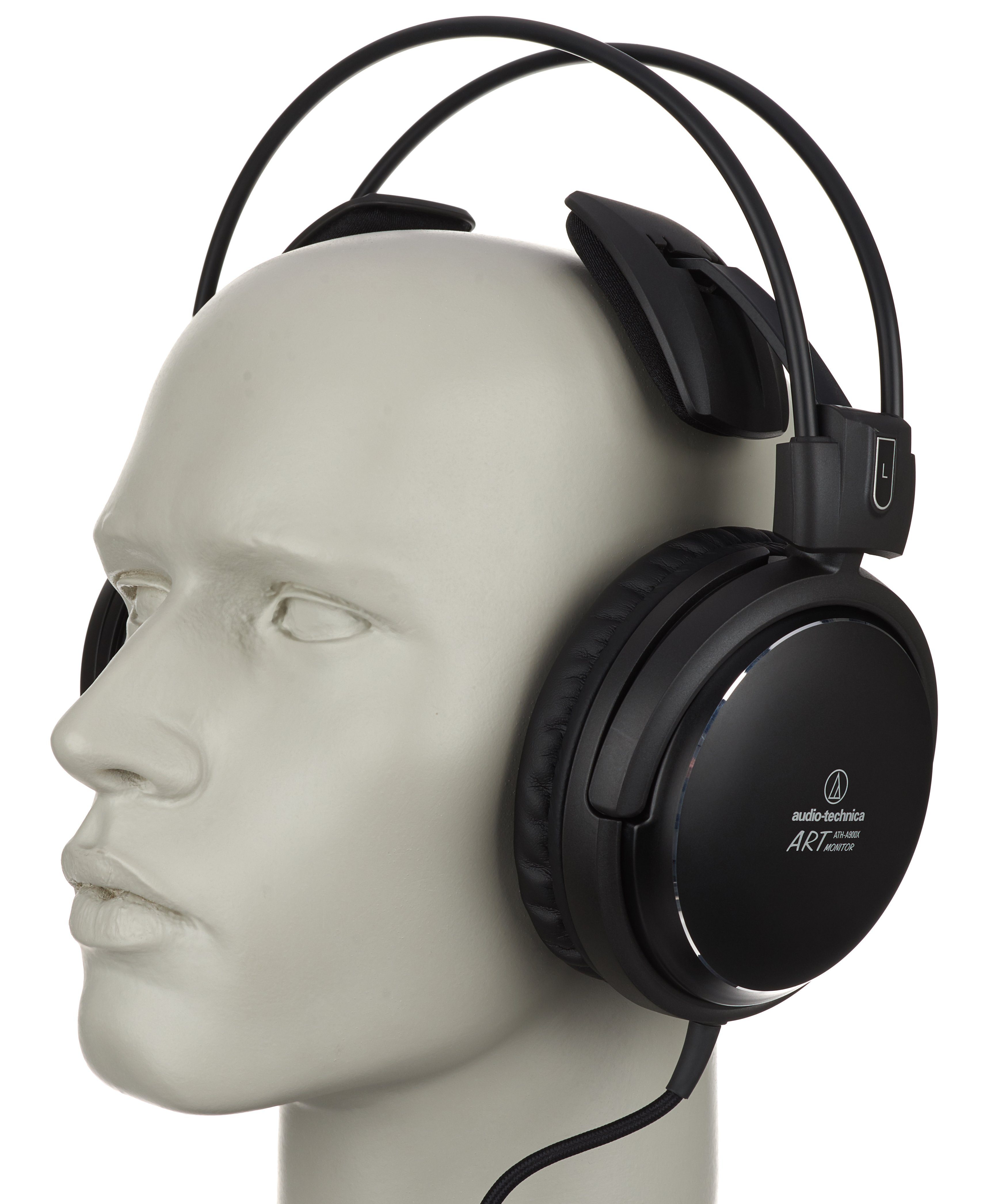 Der Auftritt des ATH-A900X ist futuristisch. Statt eines Kopfbügelbandes sollen zwei „tastende“ Fühler den nötigen Halt am Kopf geben. Sie sind mittels einer Gelenk-Konstruktion dreidimensional beweglich. Mattschwarzes Finish und silberne Zierränder sorgen für edle Anmutung.