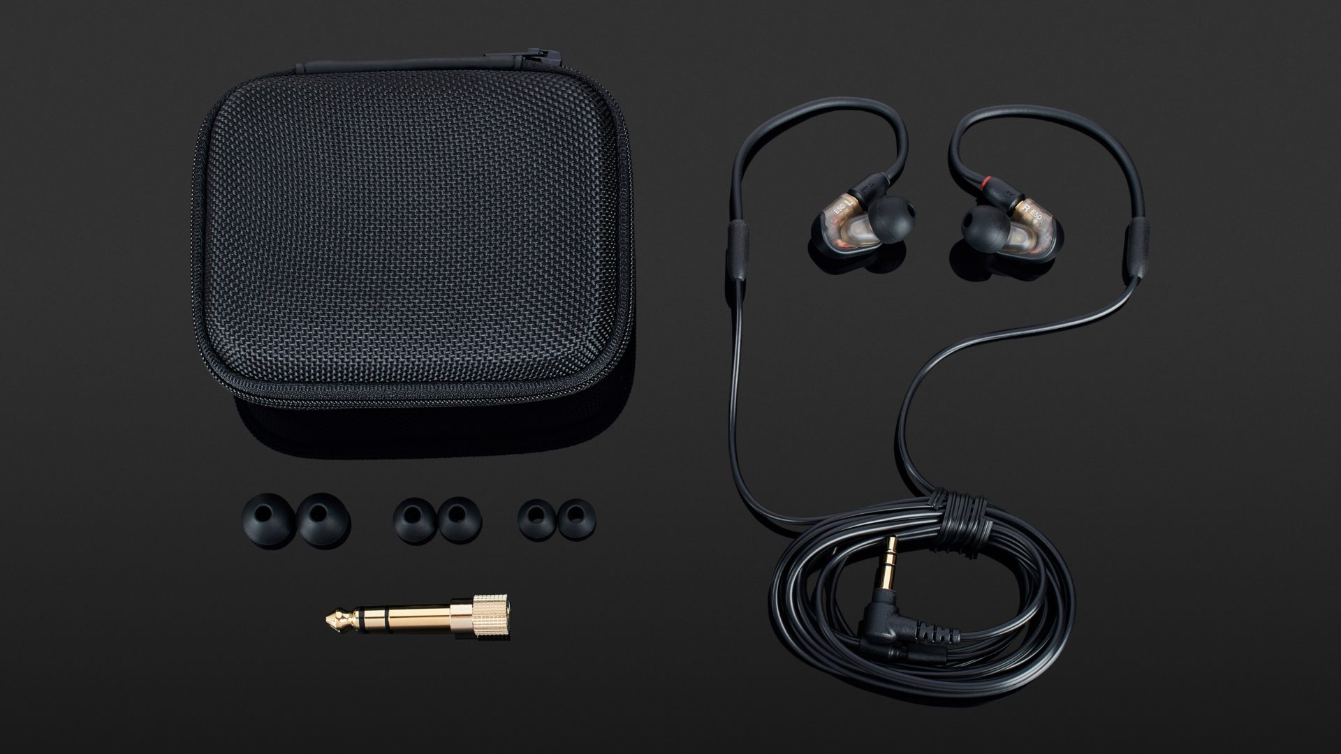 Das Zubehör ist nicht üppig, dafür aber hochwertig. Für den Transport wird ein Zipper-Case mitgeliefert, welches ausreichend Platz für den Hörer bietet. Dazu gibt es Silikon-Ohrpolster in vier verschiedenen Größen (XS, S, M und L). Dennoch: Andere Hersteller geben dem Käufer mehr Experimentiermaterial in die Hand, ein Satz Schaumstoff-Polster à la Comply zum Beispiel würde dem ATH-E50 sicherlich gut zu Gesicht stehen. Für den Klinkenadapter gibt es wieder Pluspunkte, tatsächlich benötigt man diesen im „professionellen“ Bühnen- und Studioalltag immer noch häufig!
