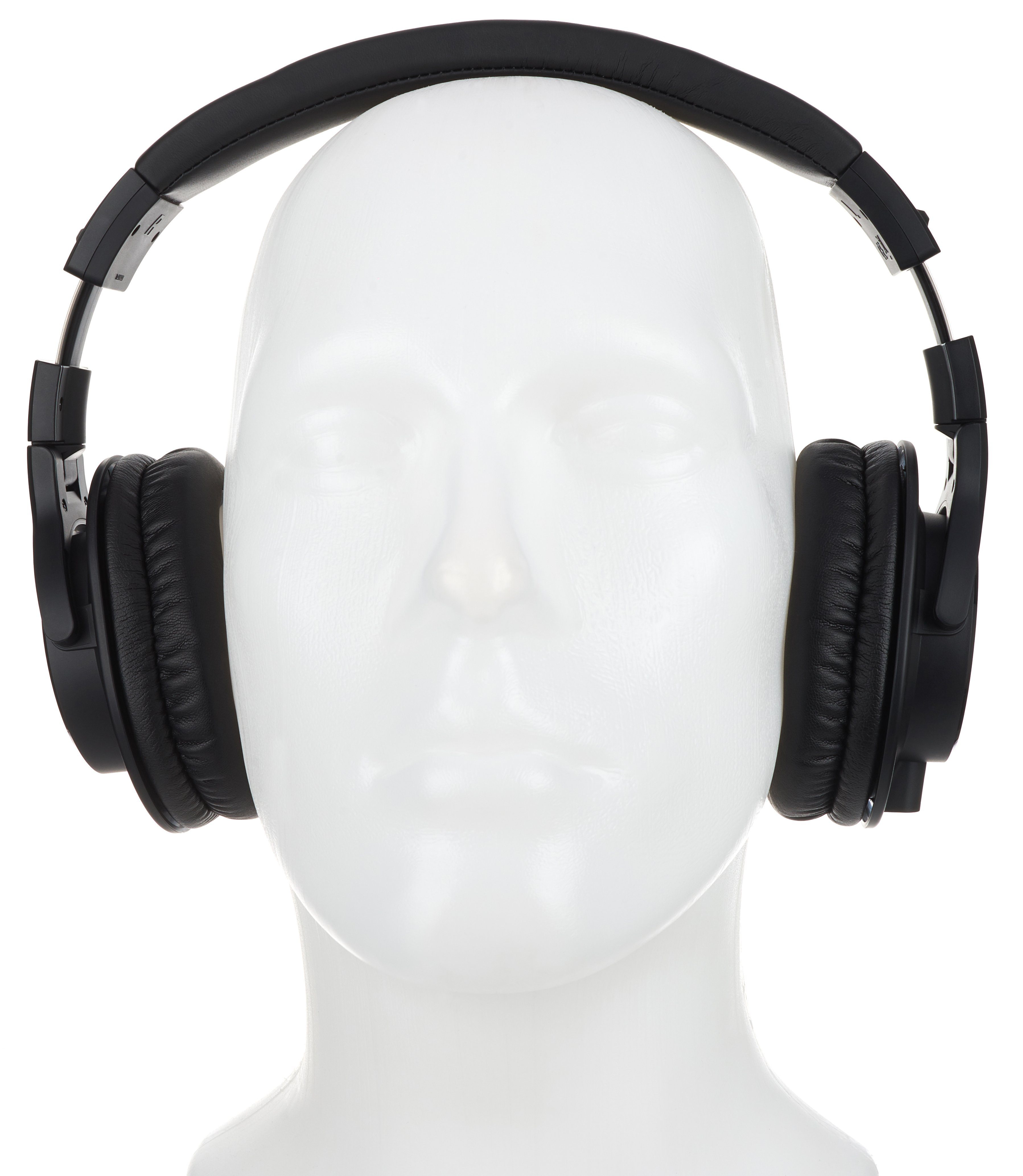 Der Kopfhörer besteht vorwiegend aus Kunststoff, die Ohr- und Kopfpolster sind aus Kunstleder, das sich aber sehr angenehm anfühlt. Die Bügel lassen sich in der Länge verstellen und rasten in 16 verschiedenen Stufen ein. Die flexibel verstellbaren Ohrmuscheln erlauben das Wegdrehen einer Muschel im Studio und das Einklemmen des Kopfhörers zwischen Kopf und Schulter, was man aus dem DJ-Bereich kennt.