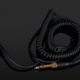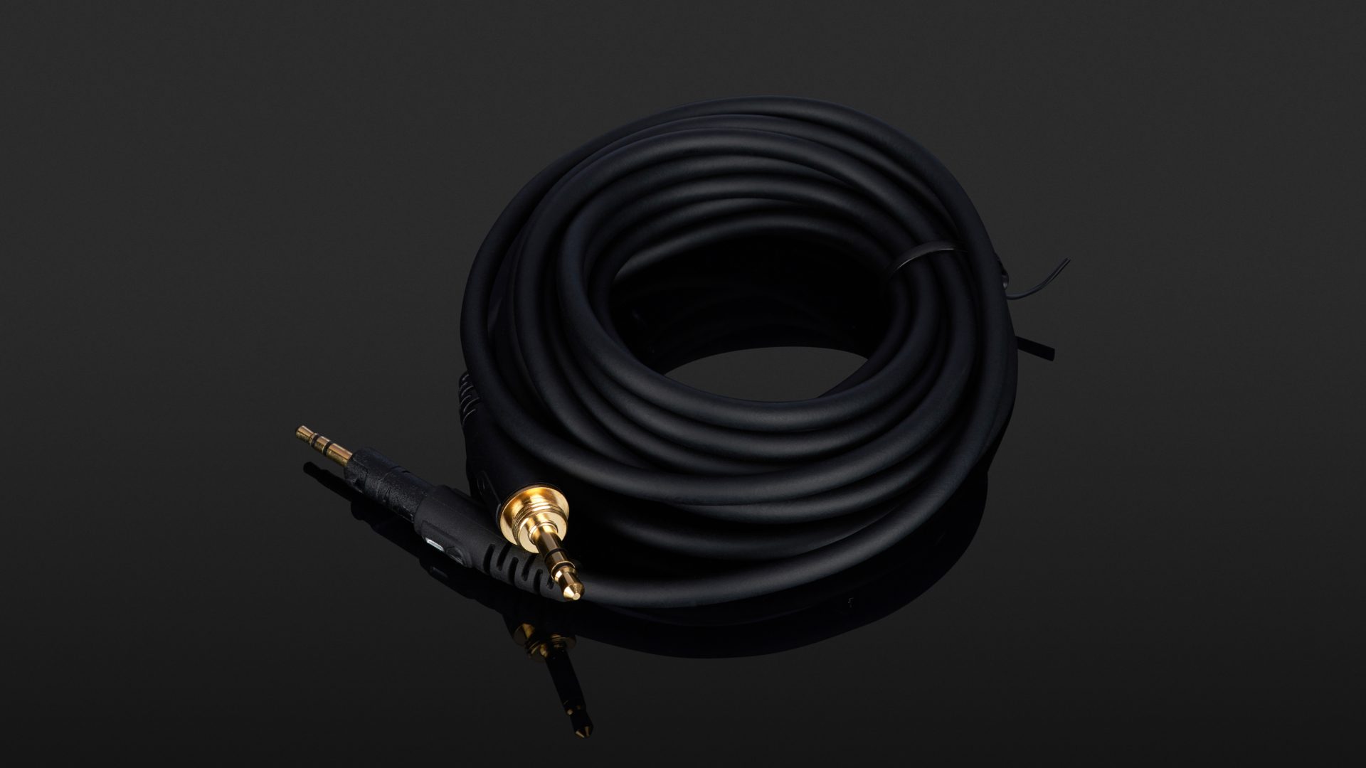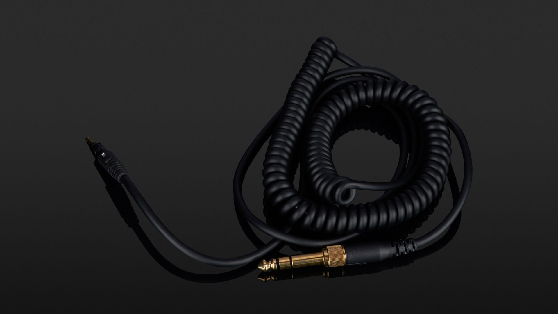 Der Audio-Technica Kopfhörer wird mit einer Transporttasche aus Kunstleder, einigen Serviceunterlagen und zwei Kabeln geliefert. Die wechselbaren Anschlusskabel haben eine Länge von jeweils drei Metern. Das Spiralkabel ist im ungestreckten Zustand jedoch nur knapp 1,20 m lang.