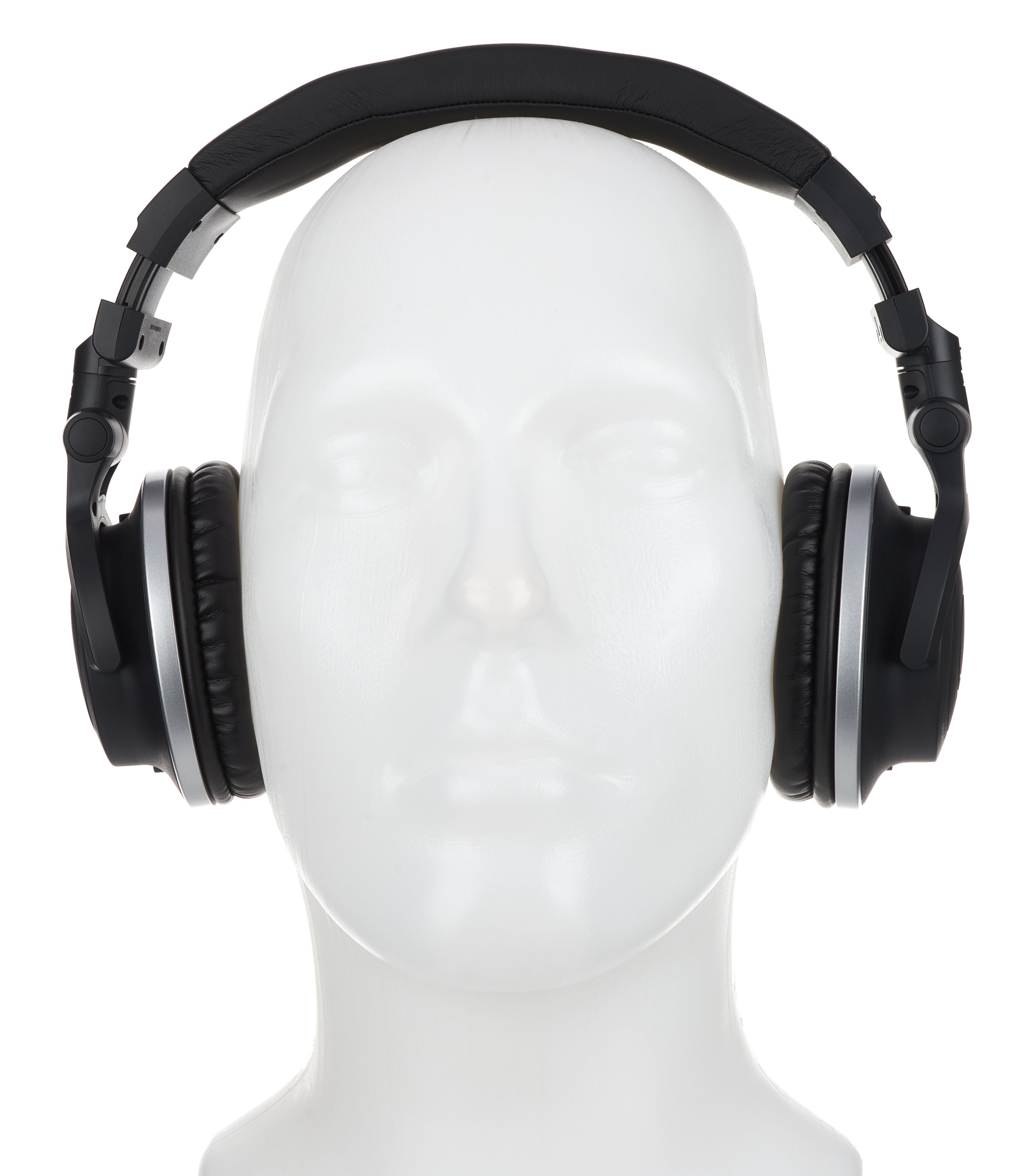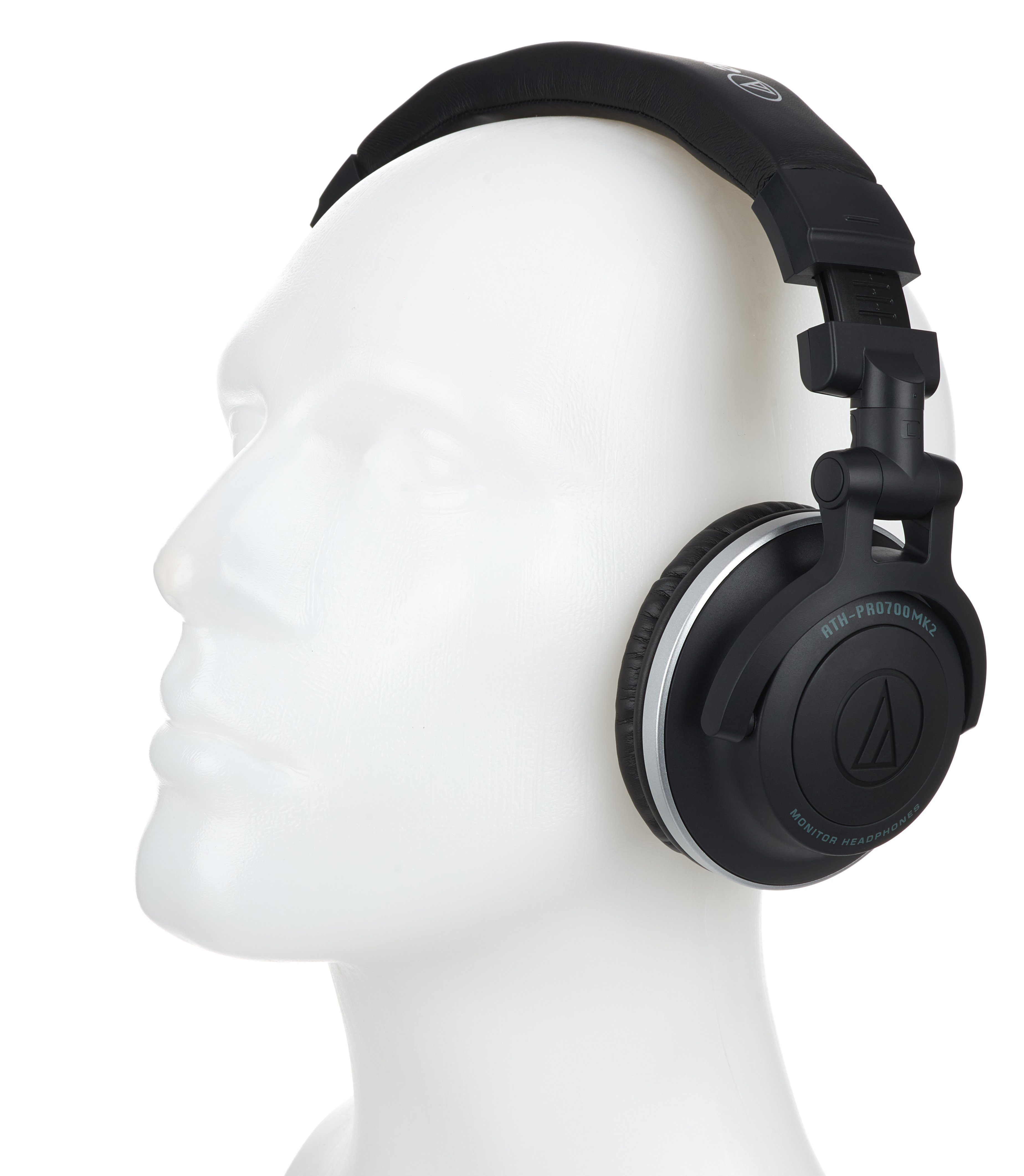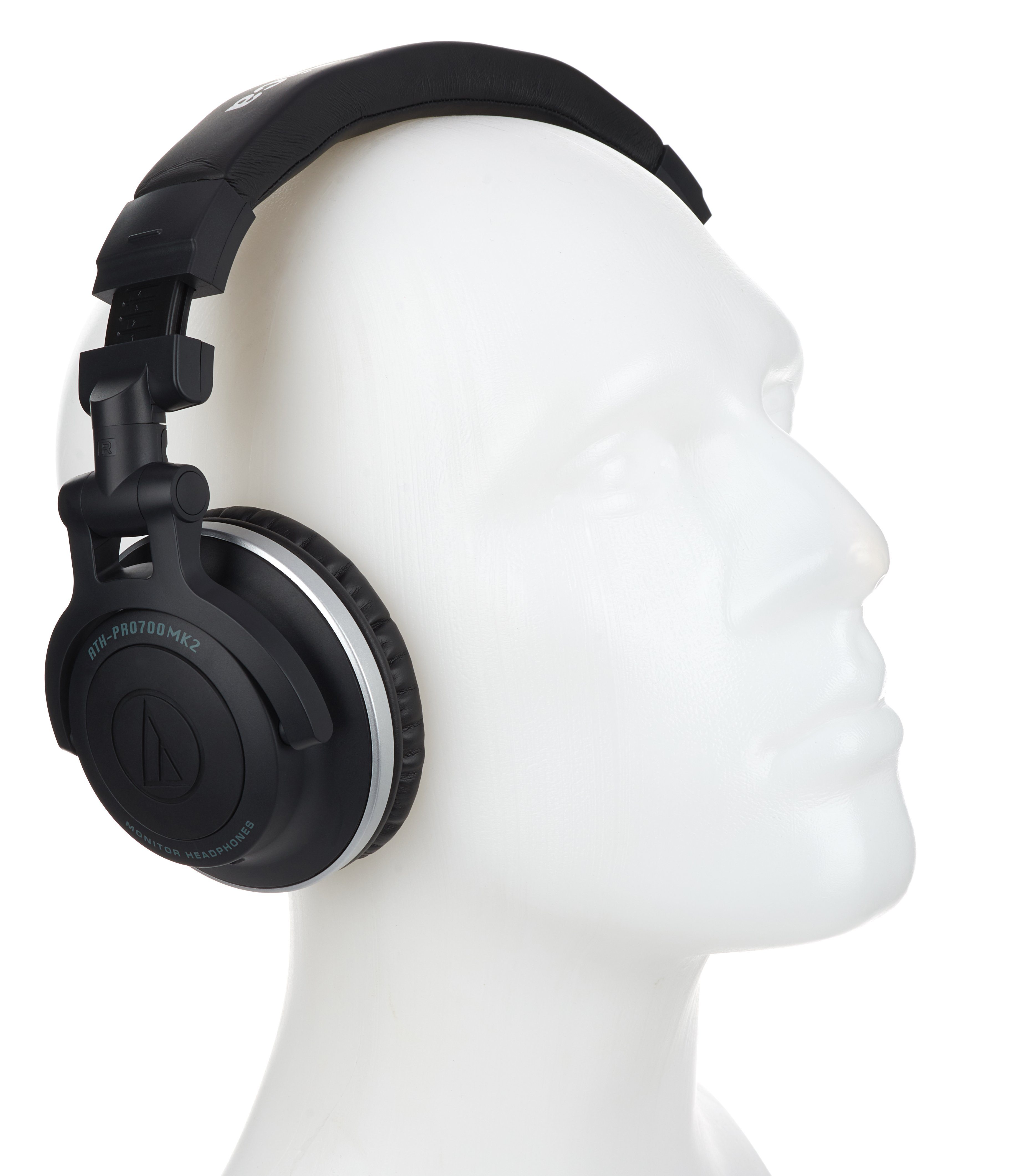 Der Audio-Technica ATH-PRO700 MK2 spricht nicht nur wegen seines Preises vorrangig den professionellen DJ an. Denn die schwarze Hartplastik-Bügel-Konstruktion wirkt robust und verleiht dem Kopfhörer einen straffen Halt, um selbst bei heftigen Kopfbewegungen nicht die Position zu verlieren. Die ohrumschließenden Muscheln presst der Bügel fest auf die Ohren. Um trotzdem für einen angenehmen Tragekomfort auch über Stunden zu sorgen, federn der Kunstlederstrang samt Schaumstoffpolsterung am Bügel und die Kunstlederpolster der Muscheln den Druck entsprechend ab. Die Kopfgröße lässt sich über die Muschelaufhängung in zehn Stufen einrasten. Der Position der Ohren passt sich die Muschel über die Drehgelenke und die Fassungen, in der die Muscheln eingeklemmt sind, sehr gut an. Allerdings erlaubt diese Konstruktion für einseitiges Monitoring kein Abwinkeln einer Muschel vom Ohr. Die Kabelführung erfolgt über einen 3,5-Millimeter-Klinkenstecker-Schraubanschluss unterhalb der linken Muschel, mit dem das beigelegte Spiralkabel zugfest verbunden wird. Bei Verschleiß sind das Kabel, als auch die Ohrpolster austauschbar.