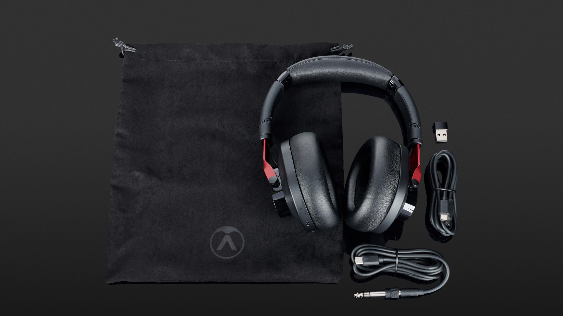 Der Austrian Audio Hi-X25BT lagert beim Kauf im ikonischen Austrian-Audio-Karton mit Klappmechanismus und rotem Klettband. Darin enthalten ist der Kopfhörer selbst, der staubgeschützt in Plastikfolie liegt. Zwei Plastikschalen umgeben den Schaumstoff der Ohrpolster, damit diese sich beim Transport nicht verformen. Als Kratzschutz sind auf den Außenseiten der Hörschalen Folien angebracht. Auch ein Transportbeutel mit Kordelzug und eine Schnellstartanleitung sind dabei. Des Weiteren sind eine Registrierungskarte zur Garantieverlängerung sowie ein Aufkleber mit dem Herstellerlogo enthalten. Zudem dürfen natürlich Anschlusskabel nicht fehlen: Neben einem USB-C-Kabel mit Adapter von USB-C auf USB-A zum Aufladen des integrierten Akkus, bietet das zweite Kabel USB-C auf Miniklinke. Und auch ein steckbarer Adapter auf große Klinke fehlt hier nicht. Wobei die Anschlüsse allesamt unvergoldet und damit nicht vor Korrosion geschützt sind.
