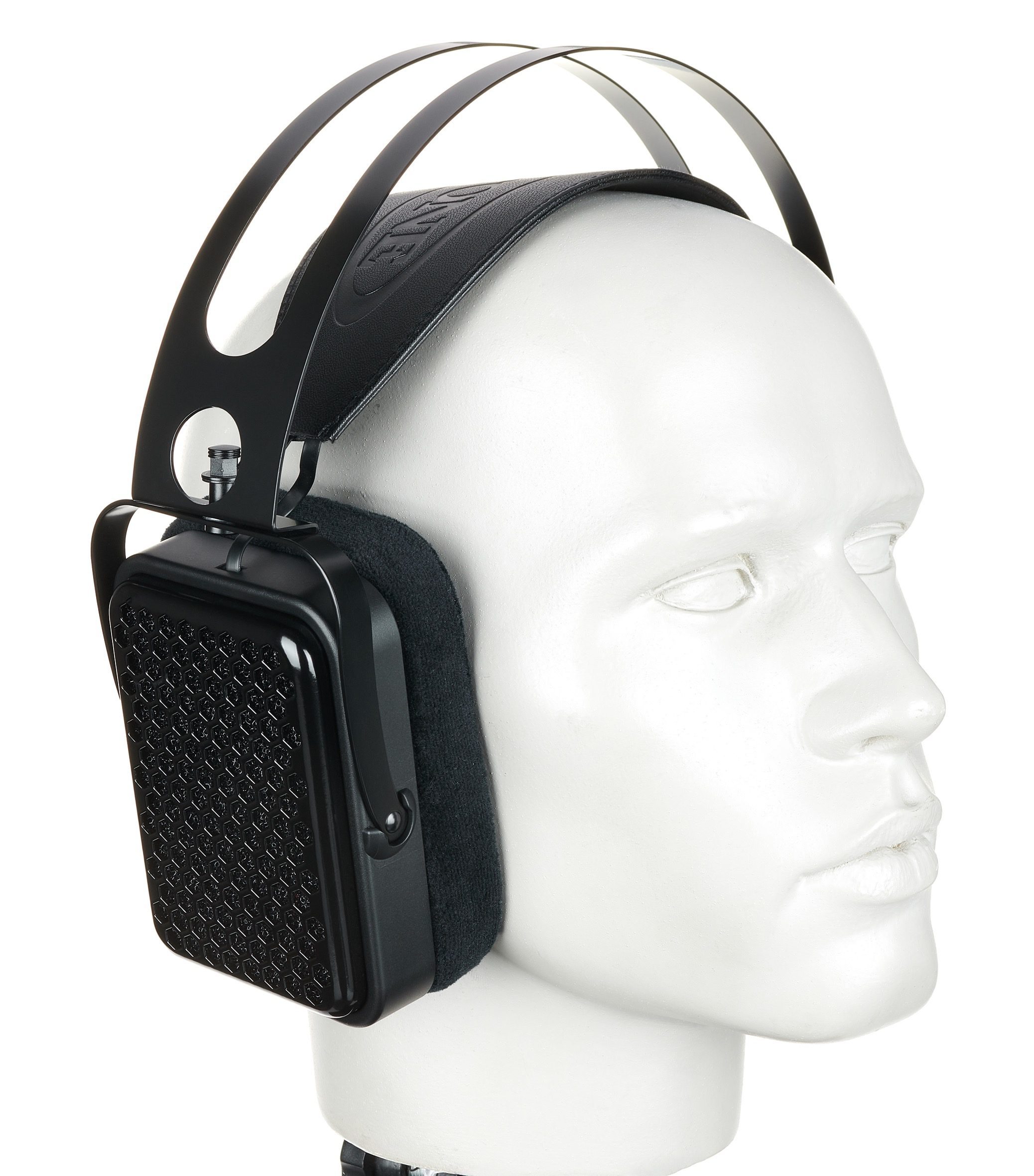 Rein äußerlich ist hier alles beim Alten geblieben: Der Planar ist nach wie vor ein unverwechselbarer Bolide, der mit einem halben Kilo Gewicht auf die Waage – respektive auf den Kopf – steigt. Aber das darf er auch, denn so ziemlich alles an ihm ist, abgesehen vom Kopfband aus Leder und den Earpads, aus solidem Metall gefertigt. Mit seinen mächtigen, quadratischen Lautsprechergondeln mit Rückwänden aus lochgerastertem Aluminium (erhältlich in den Farbvarianten: Rot, Schwarz und Creme), die mit dicken Schrauben an einem ebenfalls aus Metall gestanzten Kopfbügel befestigt sind, sieht er wirklich absolut beeindruckend aus. Auch wenn man die – sehr elegant mit eingearbeitetem Klett-Material – angebrachten Earpads abnimmt, zeigt sich ein solides Bild, denn die Membranen sind mit nicht weniger als zwölf Schrauben in der Gehäuseschale verankert.