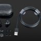 Im stylishen Karton gibt’s ergänzend vier Paar Passstücke aus Silikon in den Größen XS, S, M und L sowie Comply-Ohrpassstücke aus Schaumstoff in M. Daumen hoch, denn leider finden wir diese Memory-Ohrstöpsel nur recht selten als Ausstattungsmerkmal bei anderen Herstellern. Zusätzlich enthalten sind noch ein USB-A auf USB-C-Ladekabel (120 cm) und ein Quick Start Guide in 15 Sprachen.