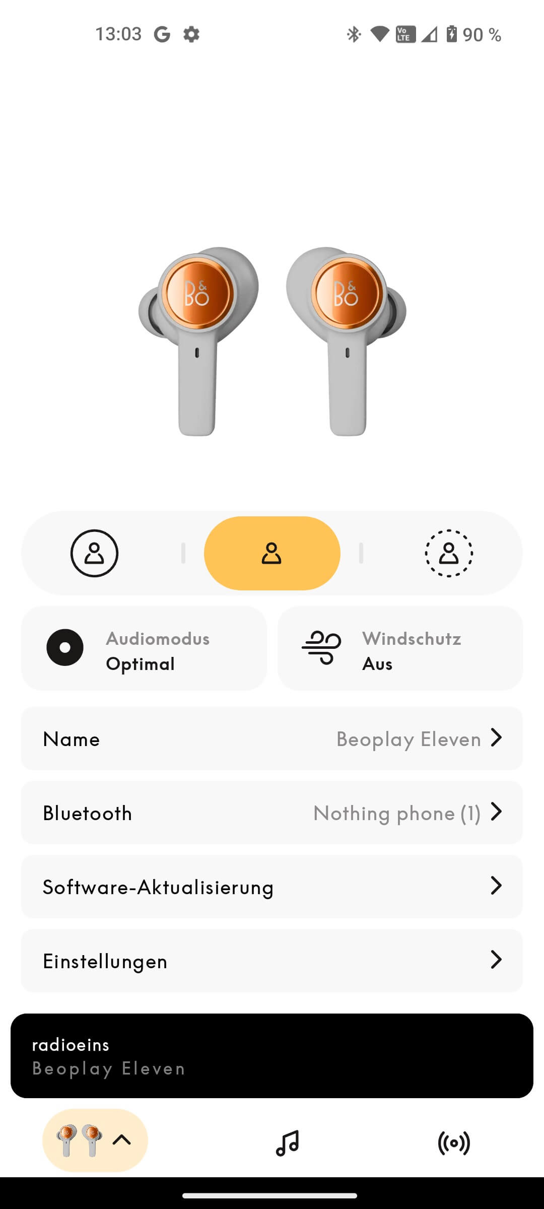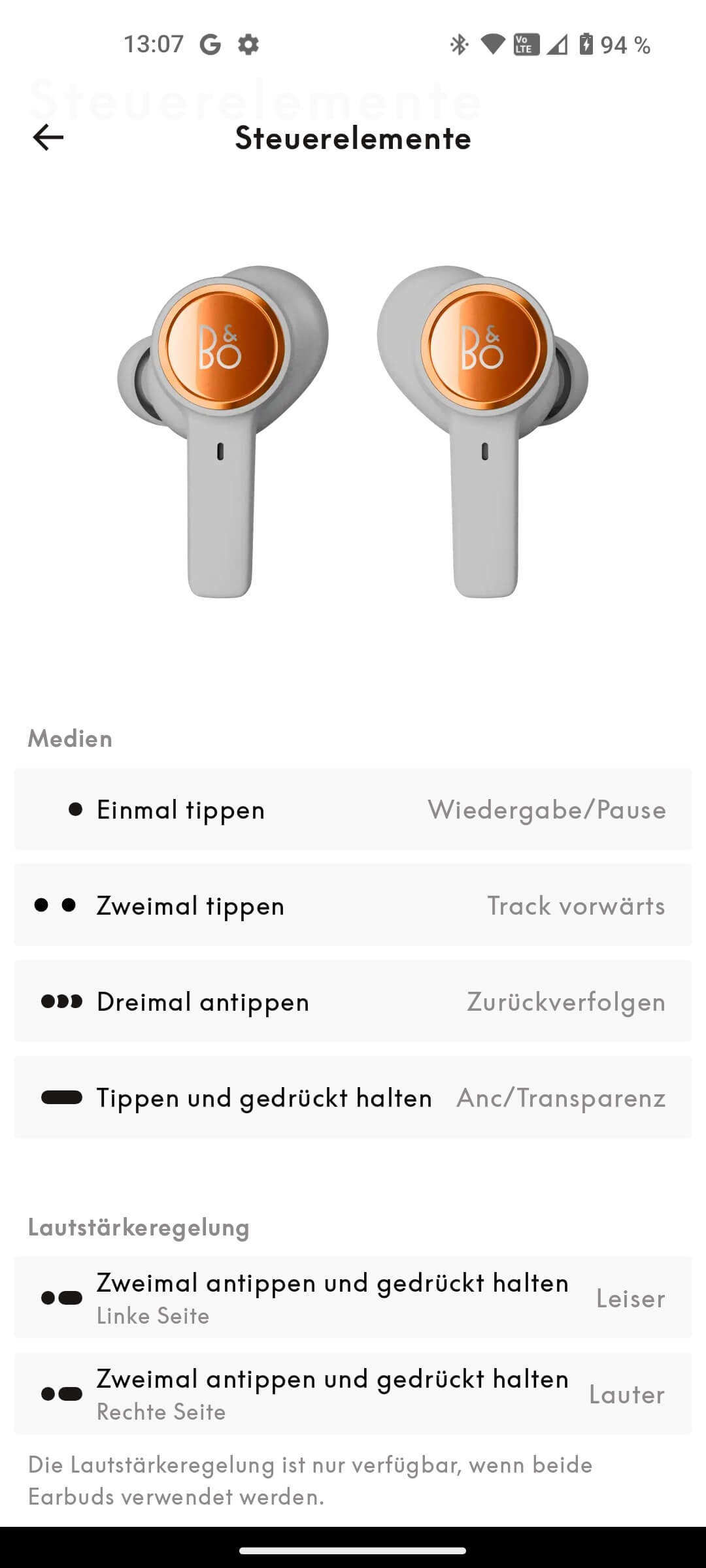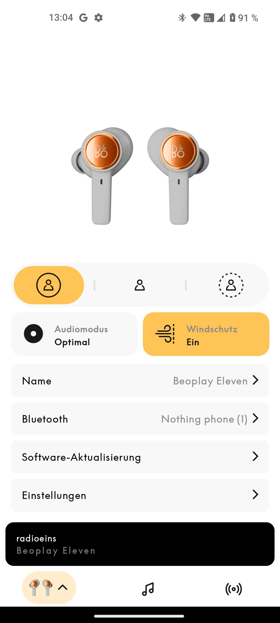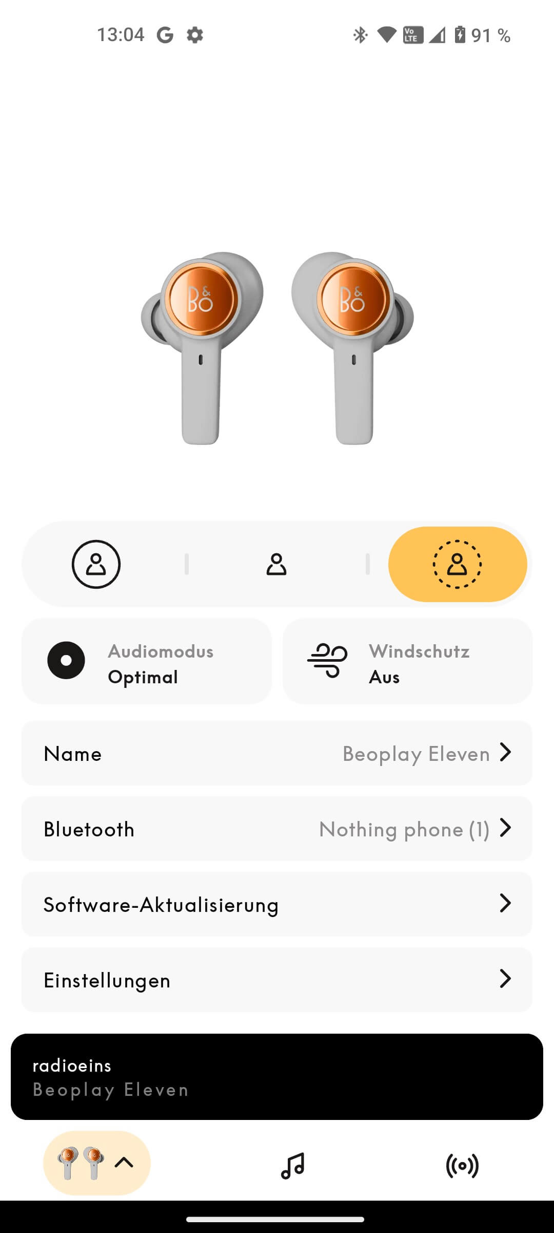 Über die Umgebungssteuerung der App-Anbindung (Android und iOS) kann ein Umschalten zwischen Standardbetrieb, ANC- und Transparenzmodus erfolgen. Allerdings entfällt die Option, die Intensität der Abschwächung oder Verstärkung des Außenbereichs wie bei den Beoplay EX anpassen zu können. Neu ist hingegen eine zusätzliche Windgeräuschunterdrückung.