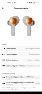 Auch auf ein manuelles Ein- und Ausschalten der Hörer über die Touch-Oberflächen wurde verzichtet, wodurch das Case stets benötigt wird. Vorgesehen ist jedoch eine einseitige Nutzung im Single-Betrieb. Darüber hinaus sind die True Wireless In-Ears mit einer Trageerkennung ausgestattet, die sich aber leider nicht bedarfsorientiert einsetzen lässt, da kein Ab- und Einschalten über die App möglich ist.