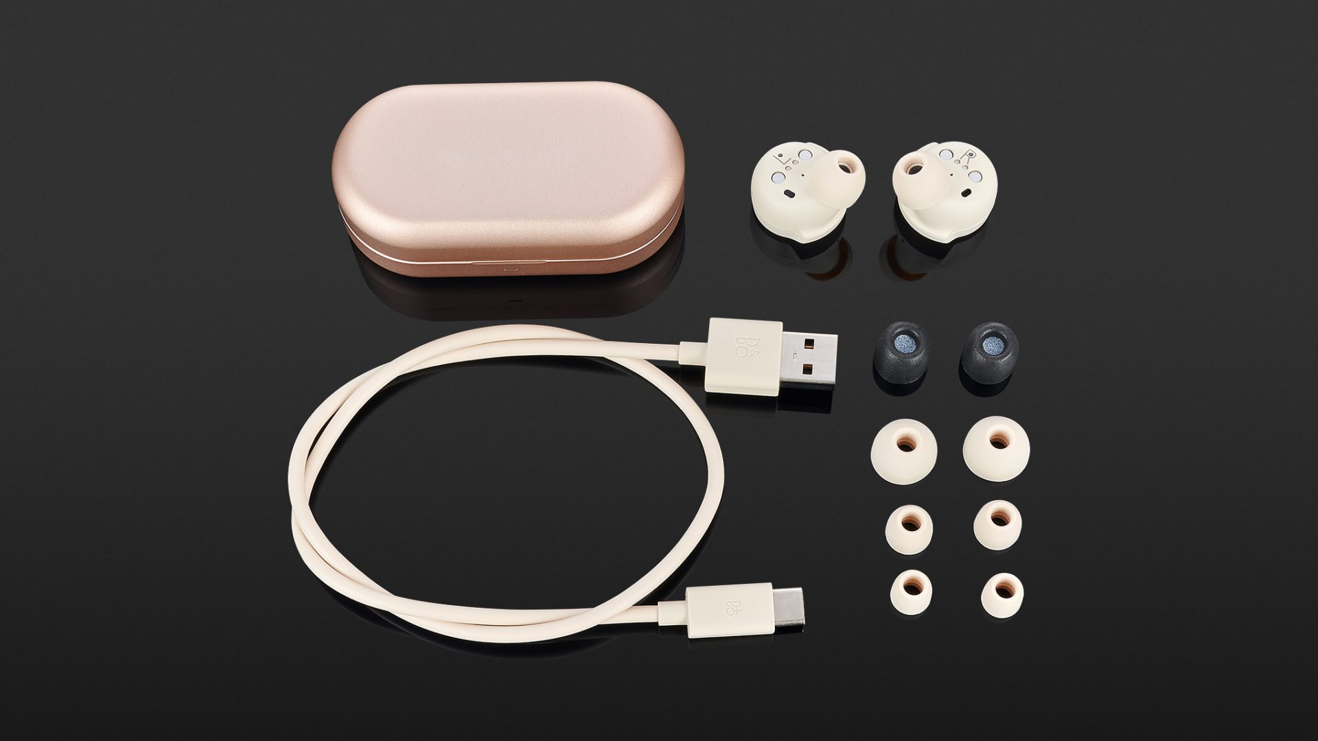 Ist die Geräuschunterdrückung aktiv, erreichen die Beoplay EQ bei gehobenerer Lautstärke eine Laufzeit von guten sechs Stunden, die sich im Grundmodus auf knappe sieben Stunden erhöht, womit den Hörern solide Ausdauerwerte bescheinigt werden können. Allerdings erscheint die gebotene Akkureserve des Lade-Cases im Vergleich zu den Mitbewerbern als nicht sonderlich hoch, da die In-Ears lediglich einmal vollständig und ein weiteres Mal zu 80 Prozent aufgeladen werden können bis eine externe Stromzufuhr benötigt wird. Ohne Noise Cancelling liegt die Gesamtlaufzeit des Systems demnach bei ungefähr 19 Stunden, während im ANC-Betrieb gute 17 Stunden zur Verfügung stehen. Ein Ladezyklus der Hörer ist dabei nach 70 Minuten abgeschlossen. Bei spontaneren Einsätzen kann jedoch von der Schnellladefunktion Gebrauch gemacht werden, die nach einer Ladezeit von 20 Minuten Kapazität für eine Hördauer von etwa zwei Stunden bereitstellt. Sowohl drahtlos via Qi als auch kabelgebunden per USB-C-Anschluss lässt sich zudem das Case mit Strom versorgen, wobei ein Ladevorgang über das mitgelieferte USB-C zu USB-A-Kabel 110 Minuten in Anspruch nimmt.