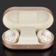 Mit einem Gewicht von acht Gramm pro Seite zählen die recht massiven Gehäuse der Hörer weder zu den Leichtgewichten noch wirkt das Erscheinungsbild beim Tragen unbedingt dezent, da die In-Ears nicht mit den Ohrmuscheln abschließen, sondern deutlich hervorstehen, was auch die Kombinationsmöglichkeit mit einer Kopfbedeckung wie Mützen in der kälteren Jahreszeit einschränkt. Die Passform bettet sich jedoch hervorragend in die Ohren ein, so dass der Sitz selbst bei mehrstündigen Hörsessions kein Druckempfinden erzeugt und bequem ist, zumal die Beoplay EQ mit einer Auswahl an fünf verschiedenen Eartips ausgeliefert werden, um die Sitzeigenschaften individuell anpassen zu können. Das als Ladestation dienende Transport-Case zeichnet sich durch ein schlankes, kompaktes Design aus, bringt lediglich 50 Gramm auf die Waage und ist aus eloxiertem Aluminium gefertigt, was sowohl optisch als auch haptisch einen ausgesprochen hochwertigen Eindruck vermittelt. Ebenfalls aus Aluminium bestehen die berührungsempfindlichen Oberflächen der Hörer, die ansonsten aus Kunststoff gefertigt und gemäß der vorhandenen IP54-Zertifizierung staub- sowie wasserbeständig verarbeitet sind, wodurch das System im Freien vor witterungsbedingter Nässe geschützt ist.