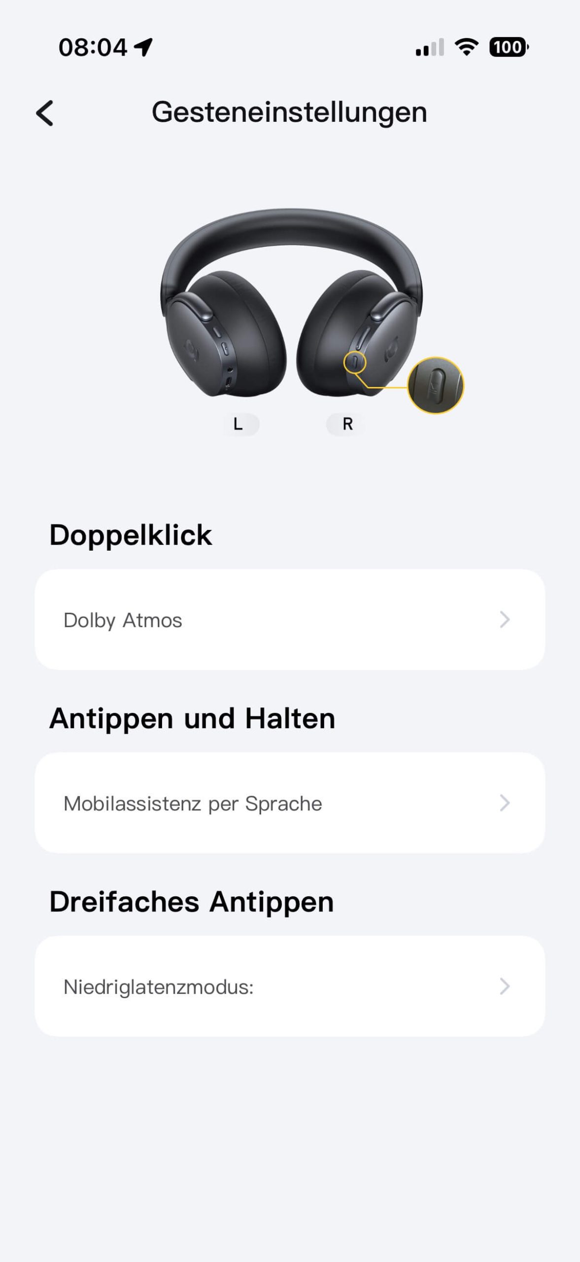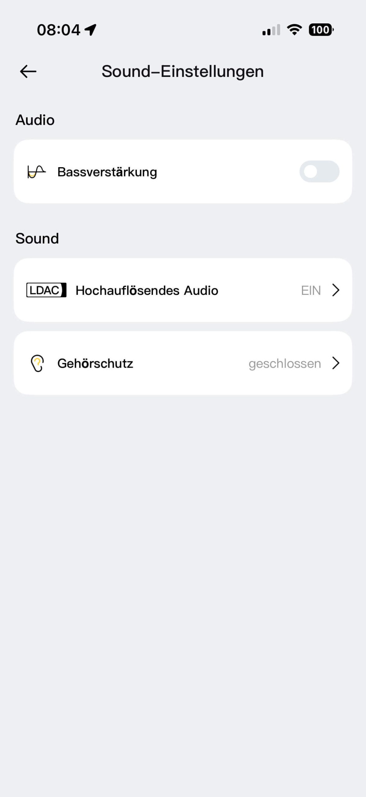 Die Baseus-App ist ein echtes Highlight. Sie läuft stabil, ist übersichtlich gestaltet und bietet eine Vielzahl an sinnvollen Funktionen. Neben Firmware-Updates lassen sich dort Dolby Atmos und Hi-Res-Audio aktivieren, Equalizer-Presets auswählen oder eigene Klangprofile erstellen.