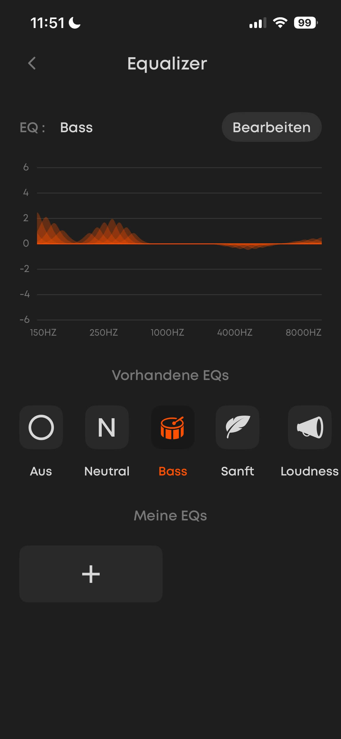 Die beyerdynamic App (iOS/Android) erweitert den Funktionsumfang um einige Komfort-Features. Sie bietet unter anderen einen Equalizer mit 5 Presets (inkl. Loudness) und speicherbaren Custom EQ mit 5 Bändern. Leider bewirkt ein Aktivieren der programmierbaren Variante, dass sich der Klang unangenehm verändert: blechern und scharf tönt es aus den Amiron 200. Das hat mit dem EQ-Preset „Aus“ klanglich nichts mehr zu tun. Es scheint, als würde hier einfach die komplette „DSP-Sektion“ deaktiviert. Daher besser gar nicht erst den manuellen EQ nutzen, bis ein mögliches Firmware Update das Problem gelöst hat.