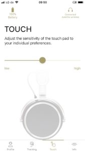 - Die Touchfeld an der rechten Ohrmuschel kann in der Empfindlichkeit justiert werden.