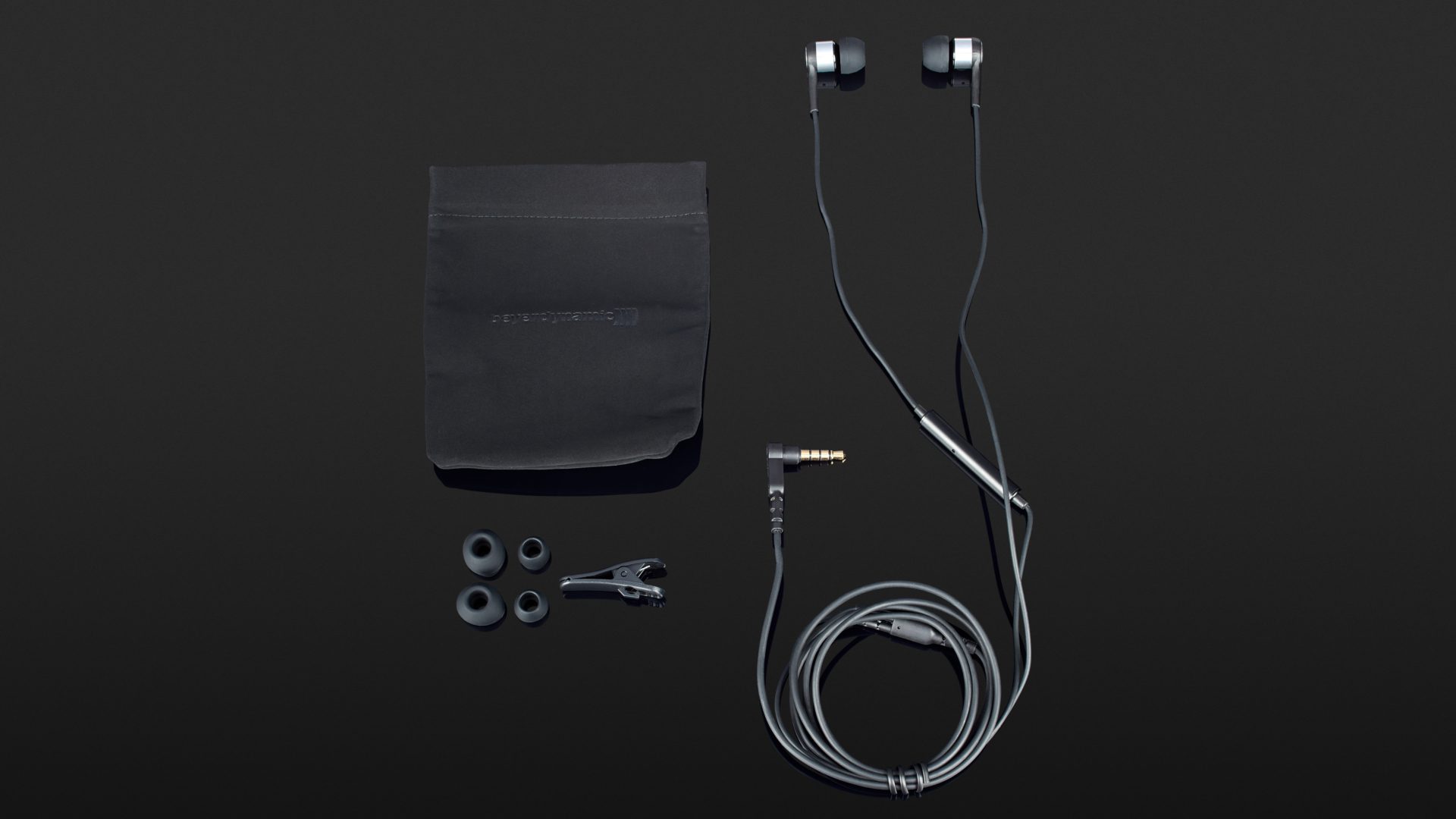 Dem In-Ear-Kopfhörer liegen in einer unprätentiösen Verpackung drei verschieden große Silikon-Aufsätze in den Größen S, M und L bei. Neben einem Kabelclip finden wir im Karton noch ein Täschchen und eine Bedienungsanleitung in englischer Sprache (weitere Sprachversionen, auch die deutsche, stehen auf www.beyerdynamic.de zum Download bereit). Warum deutsche Hersteller besonders im Audio-Bereich auf deutsche Anleitungen im Lieferumfang verzichten, will mir nicht so recht einleuchten.