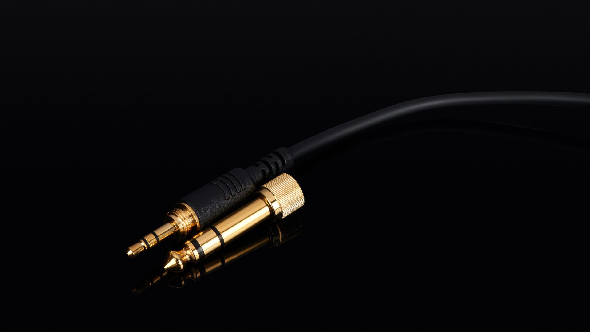 Der Beyerdynamic Kopfhörer verfügt über ein links geführtes, anderthalb Meter langes Kabel, welches für einige Studioanwendungen vielleicht etwas kurz geraten ist. Über eine Steckverbindung (vergoldete 3,5 mm Stereoklinke) ist dieses jedoch problemlos austausch- und nachrüstbar. Am anderen Ende befindet sich das obligatorische Duo aus vergoldetem 3,5 mm Klinkenstecker und dem schraubbaren Adapter auf 6,35 mm. Eine Besonderheit des Custom One Pro ist die Austauschbarkeit fast aller Anbauteile des Kopfhörers, um die Optik nach eigenem Geschmack vollkommen umzugestalten.